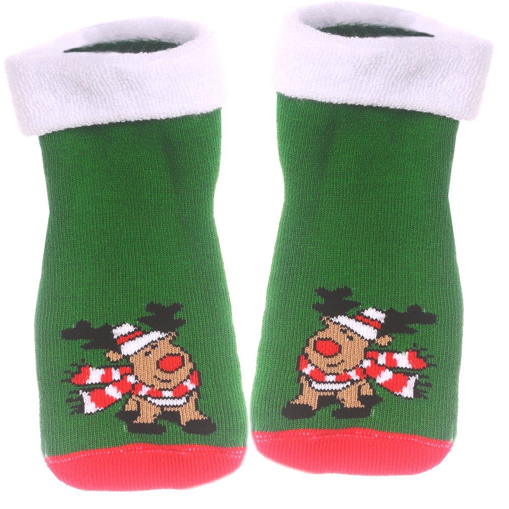 Diese warmen, grünen Frottee-Socken mit hohem Baumwollanteil und niedlichem Rentier-Motiv sind das perfekte Weihnachtsgeschenk! Durch die flauschige Frottee-Struktur und die weiche, atmungsaktive Baumwolle halten sie die Füße auch an kalten Wintertagen kuschelig warm und sorgen für ein angenehmes Tragegefühl. Das festliche Design mit Rentieren bringt weihnachtliche Stimmung in den Alltag und ist ideal für gemütliche Stunden zuhause. Ein Geschenk, das Komfort und Freude zugleich schenkt – ideal für Freunde, Familie oder als kleine Selbstverwöhnung in der kalten Jahreszeit! Material: 80% Baumwolle, 15% Polyamid, 5% Elasthan. Waschen bei 40°C