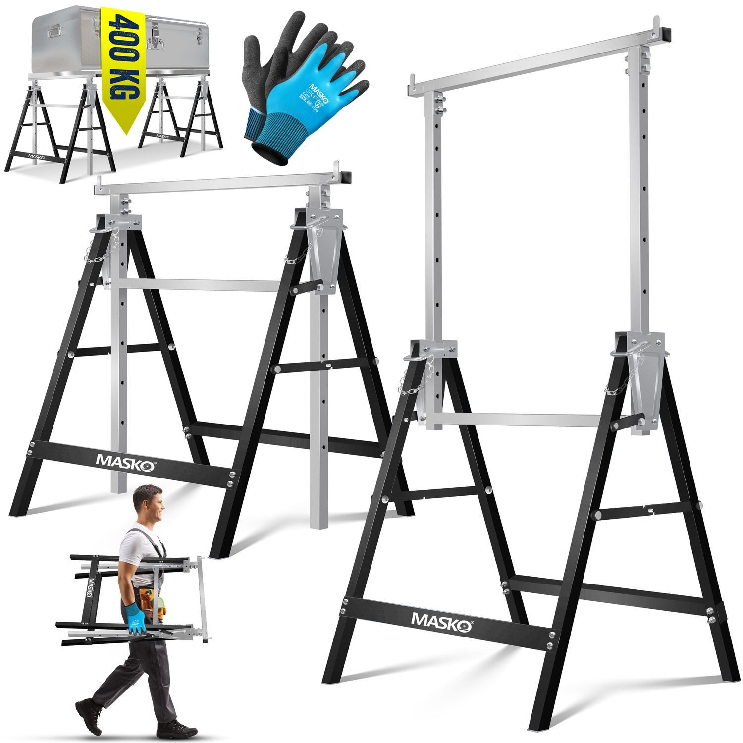 MASKO Teleskoparbeitsbock beeindruckt mit hoher Belastbarkeit, flexibler Höhenverstellung (80-130 cm), leichtem Design, und robustem Metallbau für vielseitige Anwendungen inkl. Arbeitshandschuhen