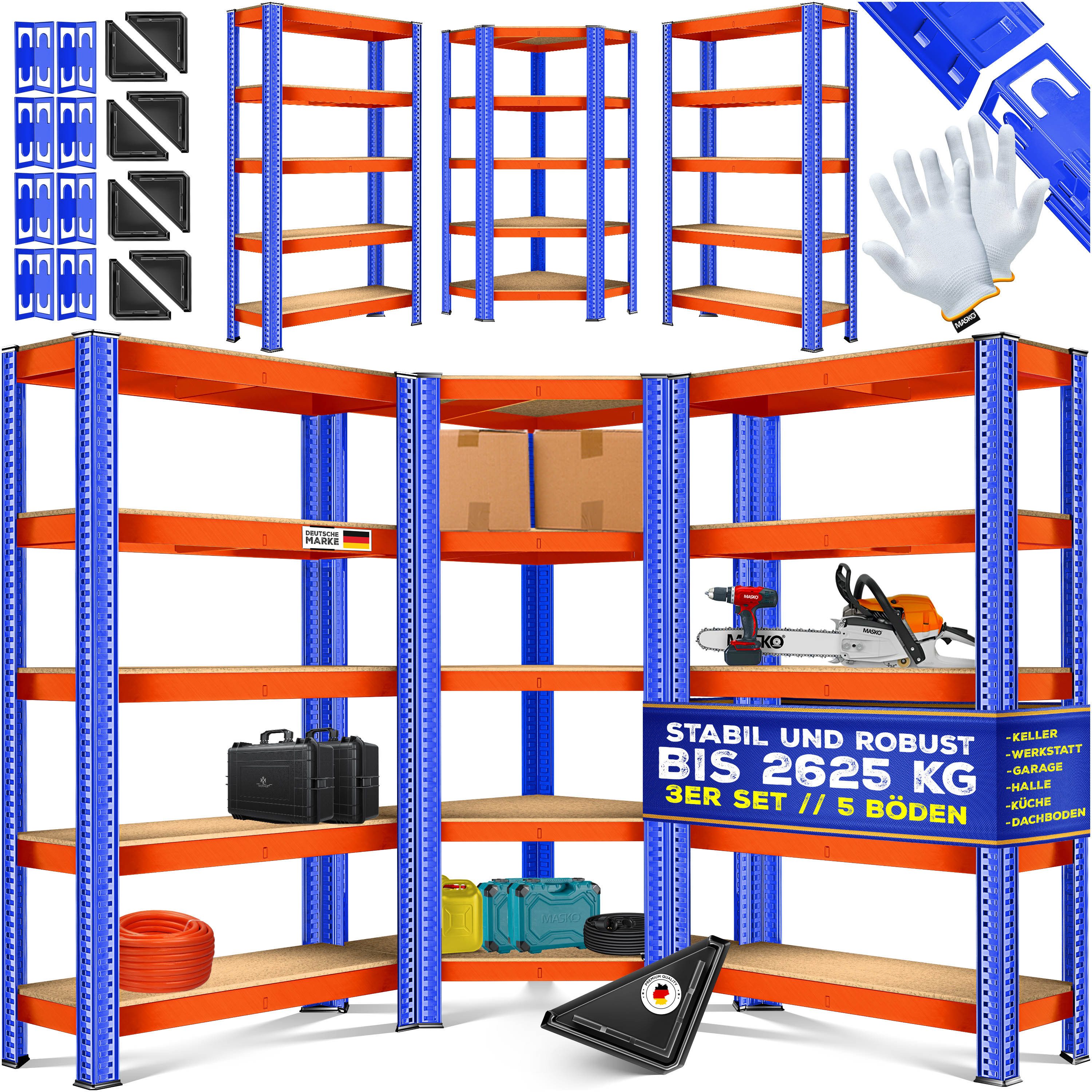 Mit dem KESSER 3er Set-Regalsystem nutzen Sie Ecken optimal aus, und bringen mehr Ordnung und Übersicht in Lager, Werkstatt , Garage
