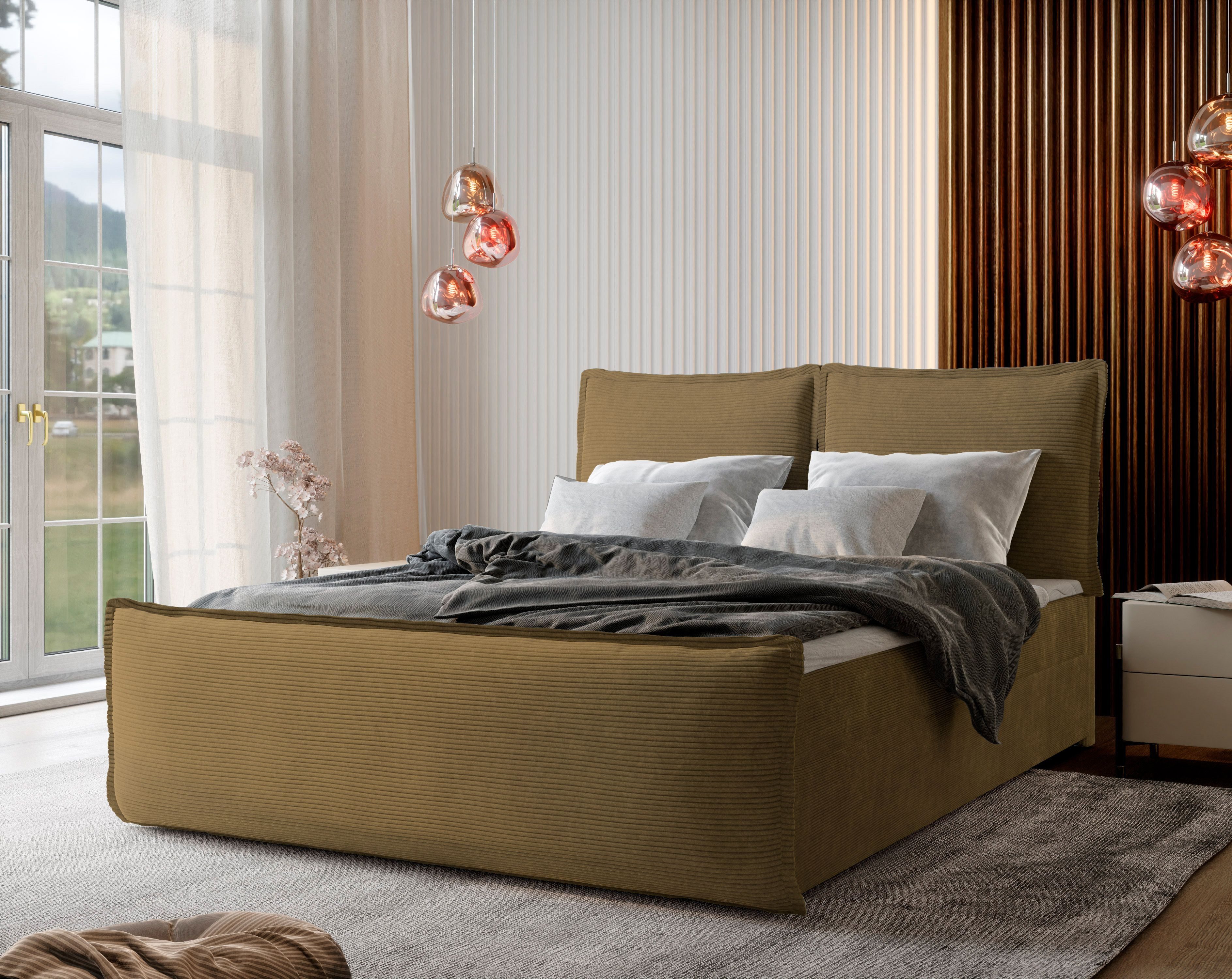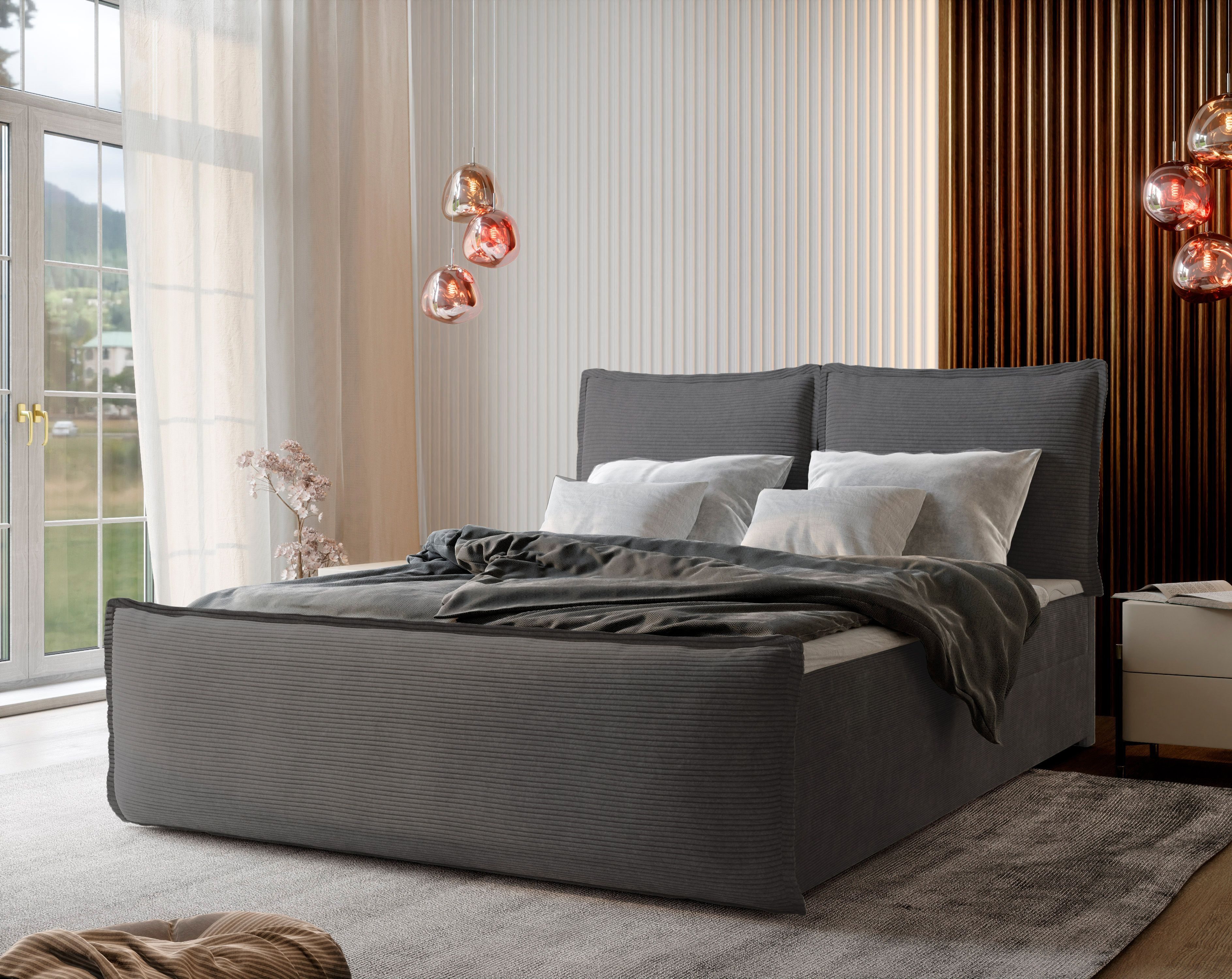Das dekorative Kopfteil und der angenehm weiche Stoff LINCOLN 61 verleihen dem Bett ein modernes und zeitloses Aussehen, das sich in jedes Schlafzimmer perfekt einfügt.