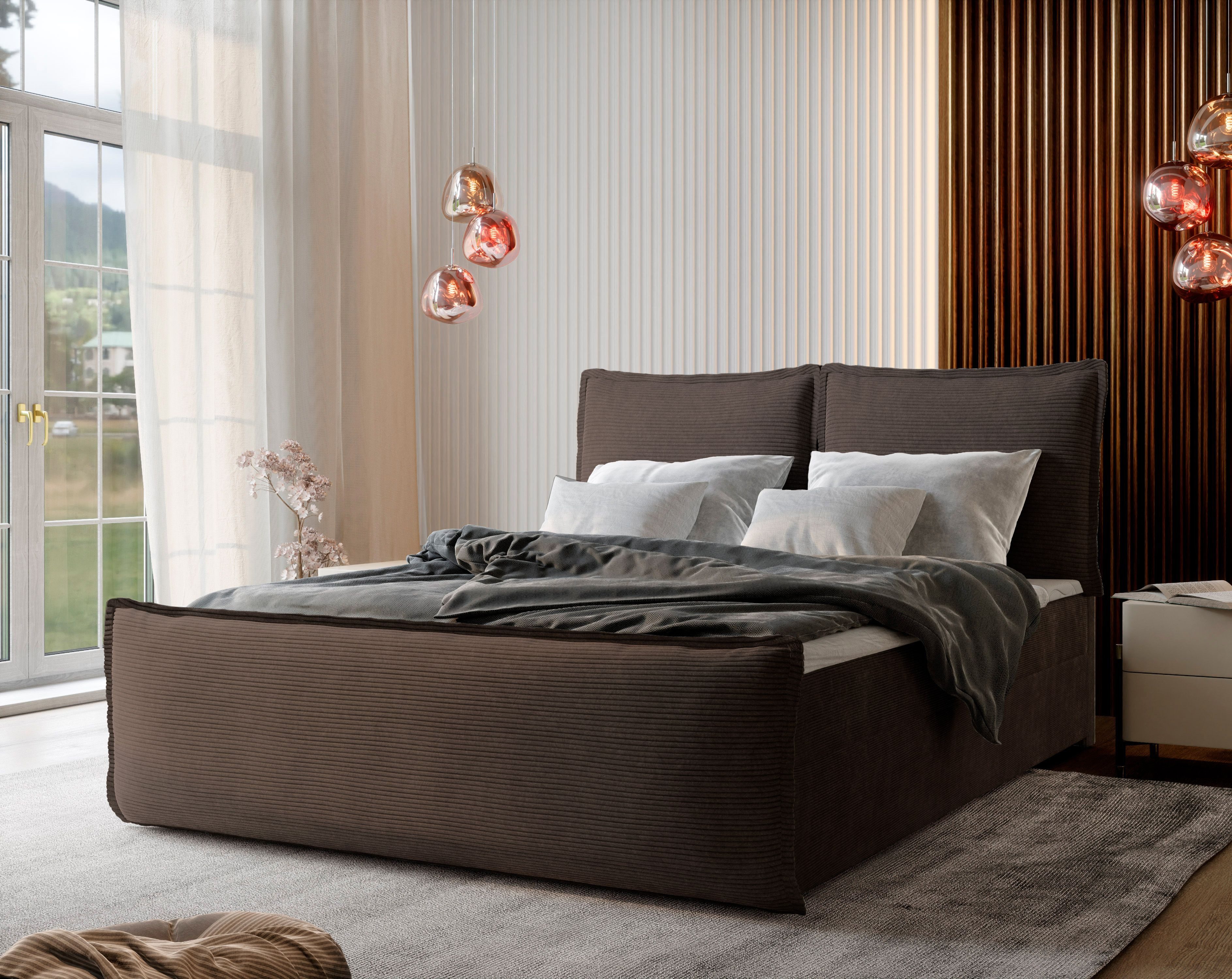 Das Kontinentalbett MONTA vereint Stil, Funktionalität und ergonomischen Komfort in einem einzigartigen Design. Durch die harmonische Verbindung von Ästhetik und praktischen Eigenschaften wird dieses Bett zum Blickfang in jedem Schlafzimmer und sorgt für eine einladende Atmosphäre voller Eleganz.