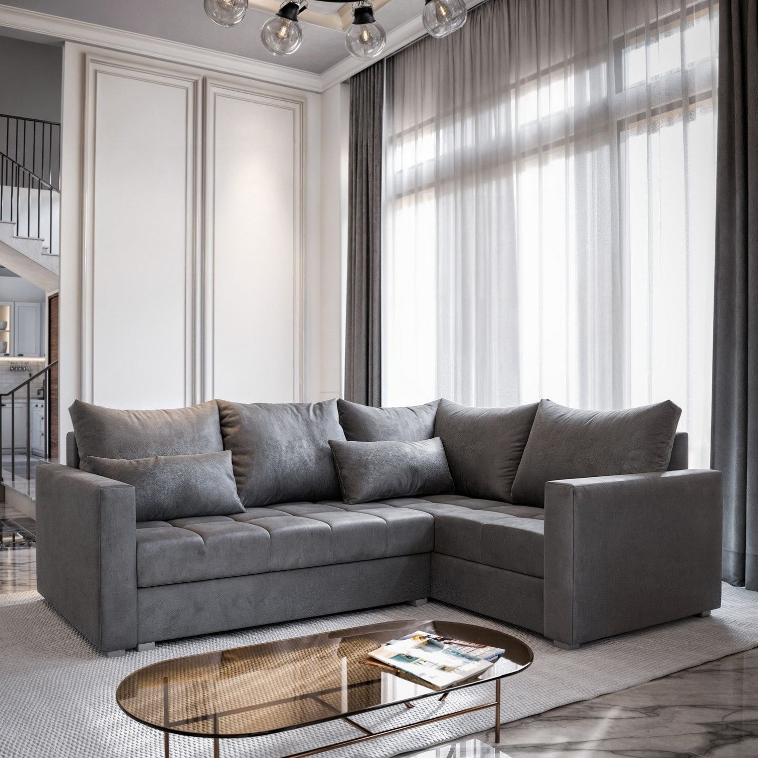 Unangekündigte Gäste, eine Familienfeier oder der Besuch von Freunden werden für Sie keine Herausforderung mehr sein. Dank der Schlaffunktion wird jeder Raum an Funktionalität gewinnen. Laden Sie Ihre Freunde in eine Kunstgalerie ein - niemand wird an Ihrem neuen Ecksofa gleichgültig vorbeigehen können.