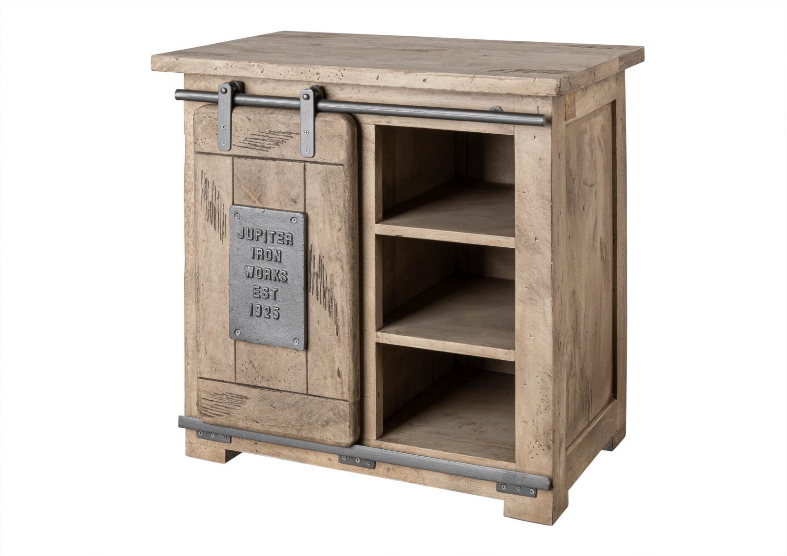 Einen derben Industrie-Charakter bringt diese Kommode der Reihe RAILWAY in Ihr Zuhause. Das vollmassive Möbelstück aus Mango-Holz begeistert mit zahlreichen Metallelementen. So zieren Applikationen die Schiebetür, die auf einer eisernen Schiene hin- und herbewegt werden kann. Je nach Position der halbseitigen Tür kommen übrigens entweder zwei große Fächer oder drei kleine zum Vorschein.