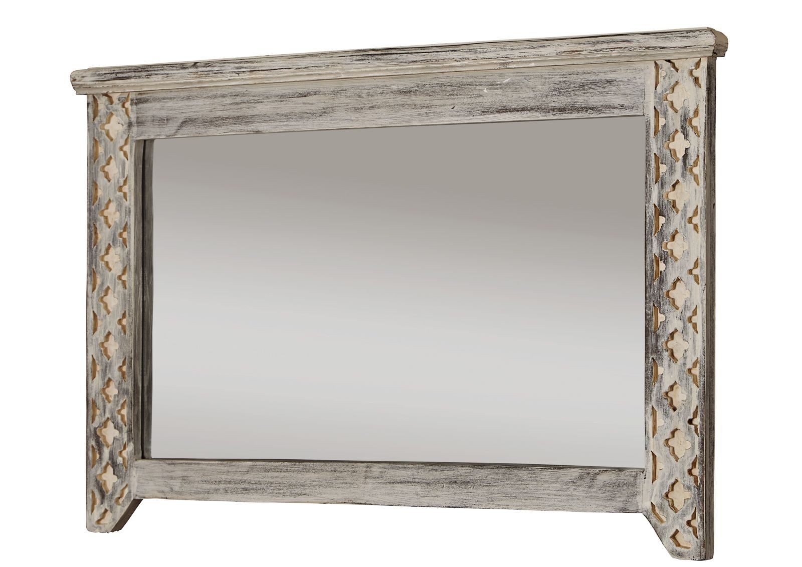 Schmücken Sie Ihren Eingangsbereich mit diesem breiten Spiegel der Serie CASTLE ANTIK. Das Einrichtungsstück aus vollmassiver Mango und Akazie kommt im schlichten Romantik-Chic daher: Unter dem weißen Finish des Rahmens blitzt das Holz stellenweise hervor. Das verleiht dem Spiegel optisches Alter – als hätten Sie ihn direkt aus einem Schloss geholt. Dieser antike Charme macht ihn zum idealen Einrichtungspartner für antike Wohnumgebungen, aber auch für verspielt eingerichtete Räume.