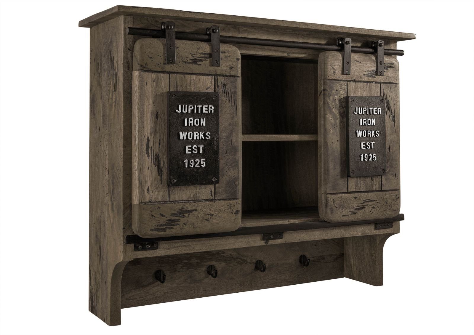 Dieses Wandregal aus Mango Massivholz ist in Badezimmer und Küche hervorragend aufgehoben. An den vier Haken des Einrichtungsstücks finden Hand- und Geschirrtücher einen Platz zum Trocknen. Im Hängeregal selbst befinden sich zwei Fächer, die sich nach Belieben füllen lassen. Der Clou des Regals aus Mango? Die beiden Schiebetüren, die sich auf Schienen hin- und herbewegen lassen und somit die komplette Optik des Einrichtungsgegenstandes beeinflussen.