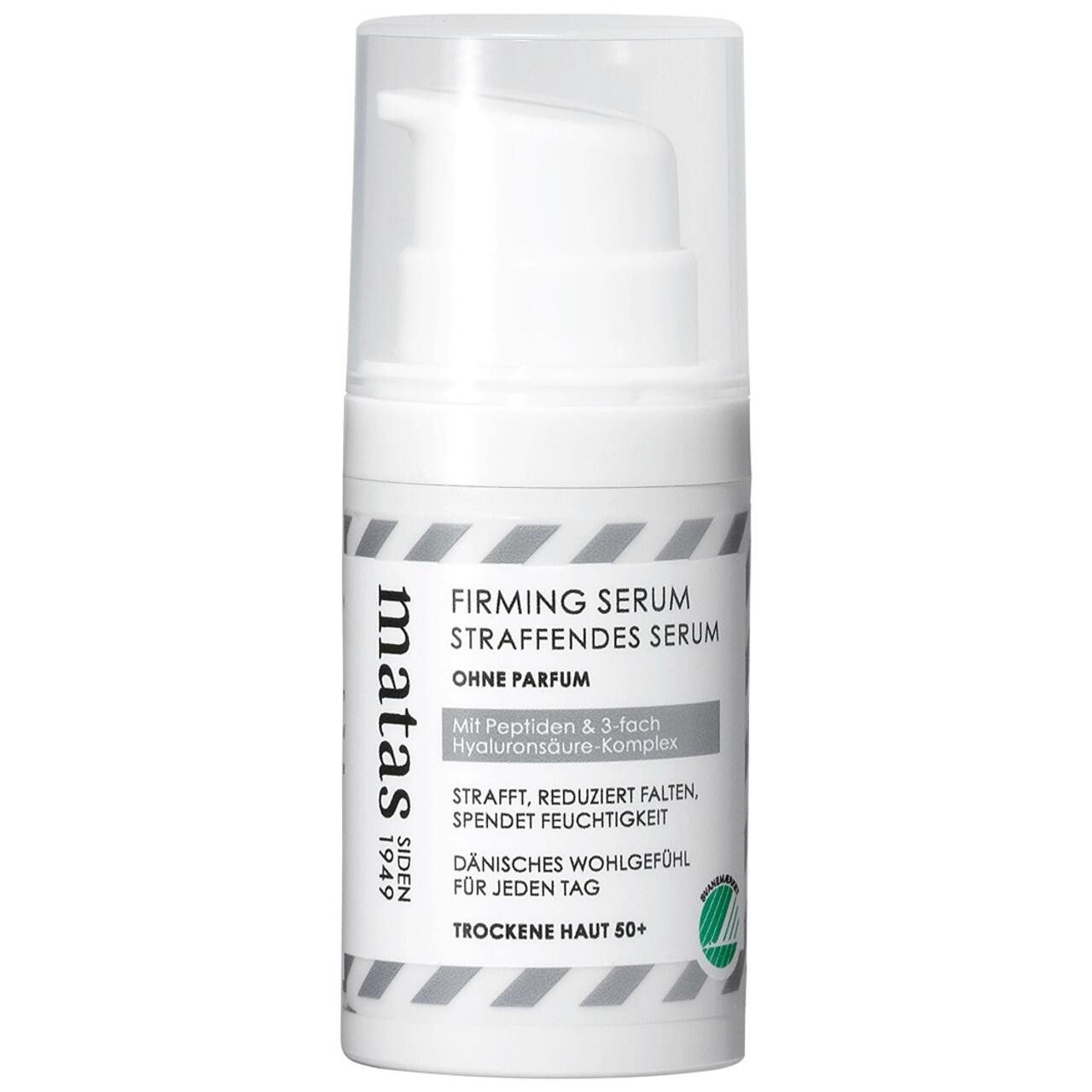MATAS STRAFFENDES SERUM ohne Parfum. Das Anti-Aging-Serum wurde speziell für die trockene Haut ab 50 entwickelt und ist die optimale Ergänzung zur Straffenden Tages- und Nachtcreme. Ein aktiver 3-fach Hyaluronsäure-Komplex spendet Feuchtigkeit, reduziert Fältchen, erhöht die Spannkraft und Elastizität der Haut. Der Peptid-Komplex Matrixyl stimuliert die Kollagenbildung und strafft.