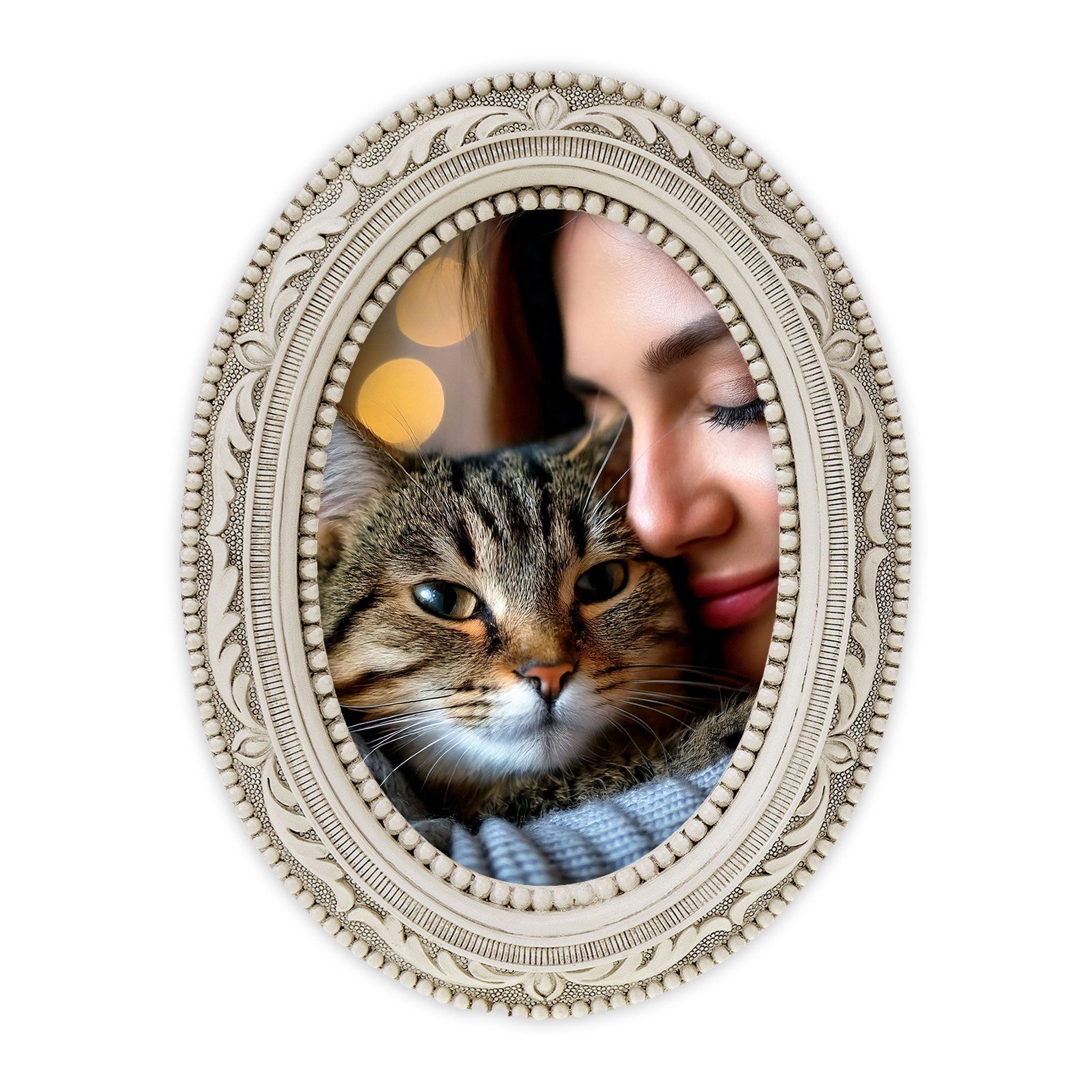 Dieser romantisch gestaltete Bilderrahmen im Antik-Stil vereint ein zartes Creme-Finish mit kunstvoller Reliefverzierung und ovaler Silhouette. Gefertigt aus hochwertigem Harz mit samtbezogener Rückseite, ist er ideal für persönliche Geschenke, festliche Anlässe und stilvolle Dekorationen.