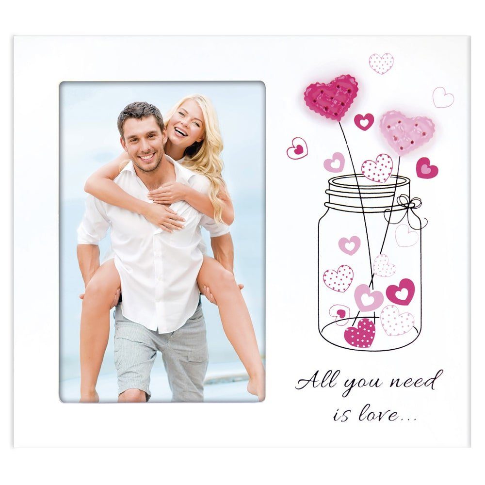 matches21 Bilderrahmen Schriftzug ALL YOU NEED IS LOVE Wechselrahmen mit 3D Dekoration Holz mehrfarbig 1 Stk 10x15 cm
