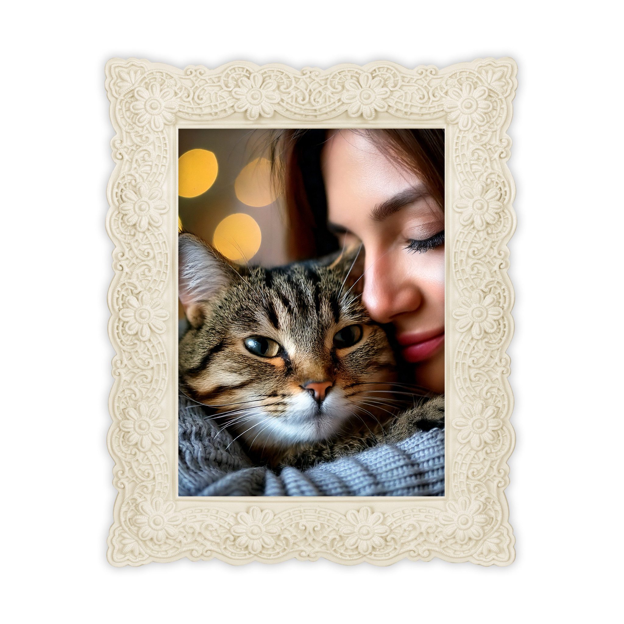 Ob als Geschenk zum Hochzeitstag, Jahrestag oder einfach als Zeichen deiner Zuneigung - mit einem besonderen Foto wird dieser Fotorahmen zum personalisierten Highlight. Sein florales Vintage-Design macht ihn zu einem Blickfang auf jeder Kommode oder Bilderwand. Ideal auch als Geburtstagsgeschenk mit Gefühl oder als Liebesgeschenk für sie mit Herz.
