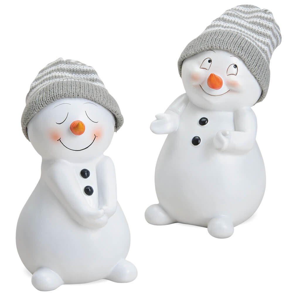 matches21 Süße Schneemann Deko Figuren mit Strickmützen Weihnachtsdeko Winterdeko 2er Set sort Kunststoff je 12x12x19 cm