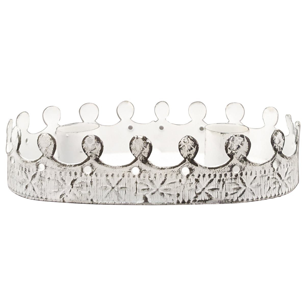 matches21 Schöner Kerzenständer Krone aus Metall im Vintage Stil - Kerzenhalter für 2 Kerzen in weiß als Wohnzimmer Deko - Stabkerzenhalter Adventskranz 16 x 9 x 3 cm