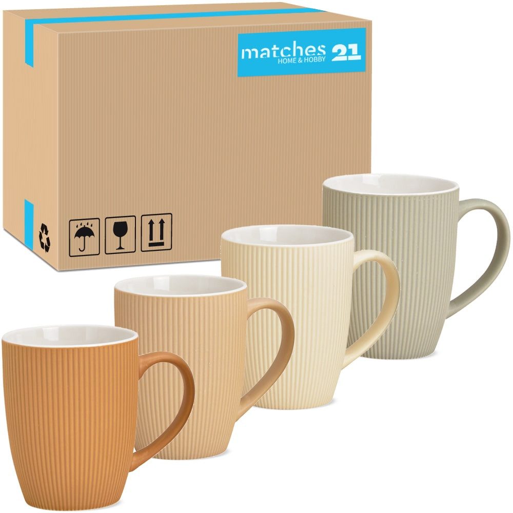 matches21 Tassen Kaffeebecher Kaffeetassen Rillen vertikal Steingut orange beige creme grau 36 Stk. 10 cm / 300 ml