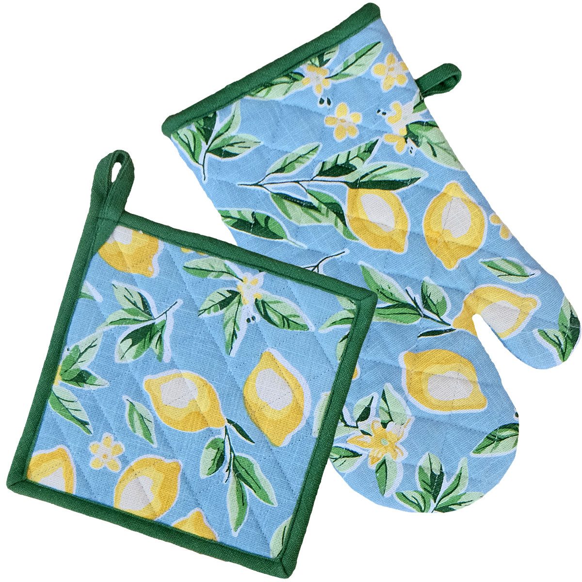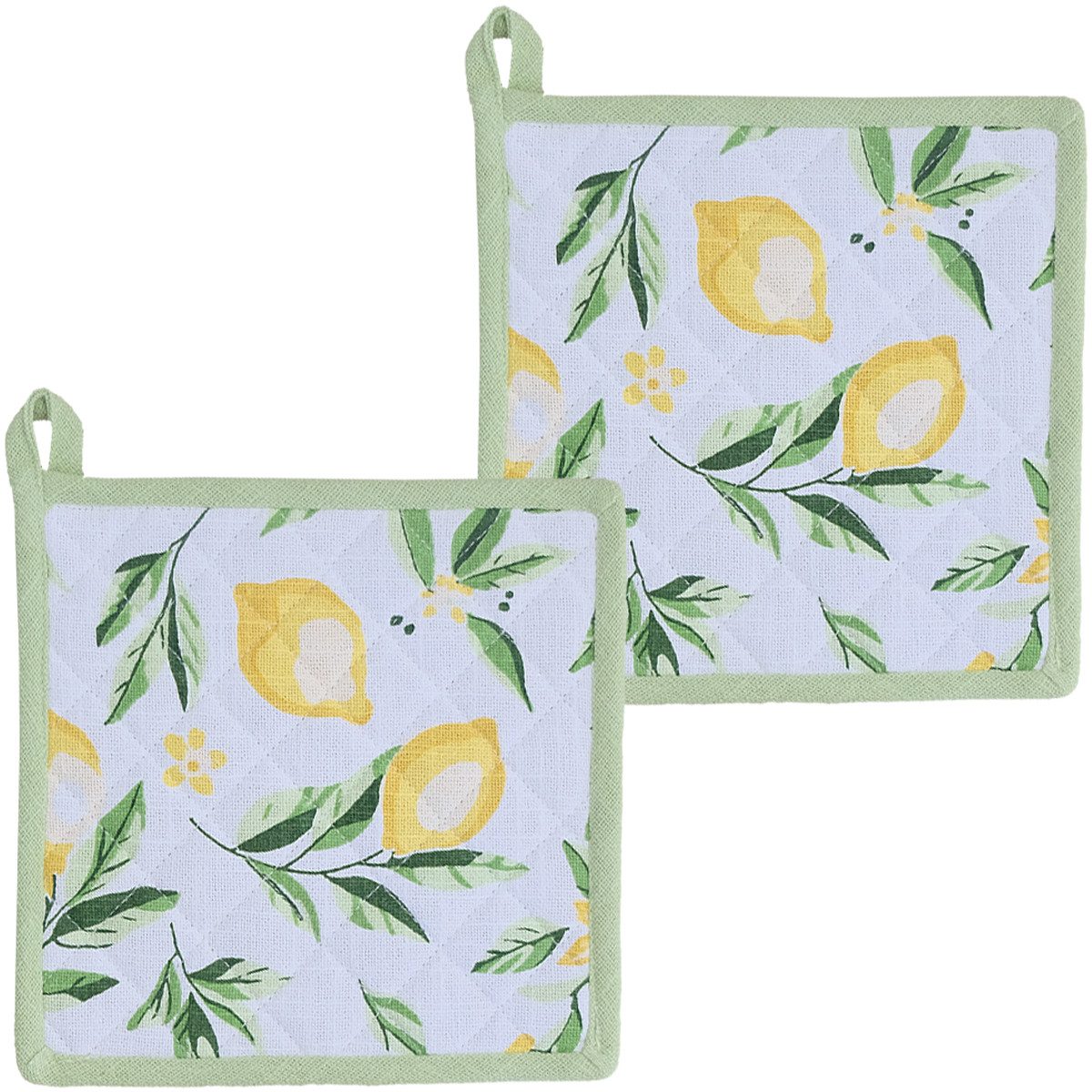 FRISCHES DESIGN – 2er Set Topflappen mit Zitronenmuster für eine stilvolle & funktionale Küche – ideal zum Greifen heißer Backformen, Töpfe & Pfannen beim Kochen & Backen.