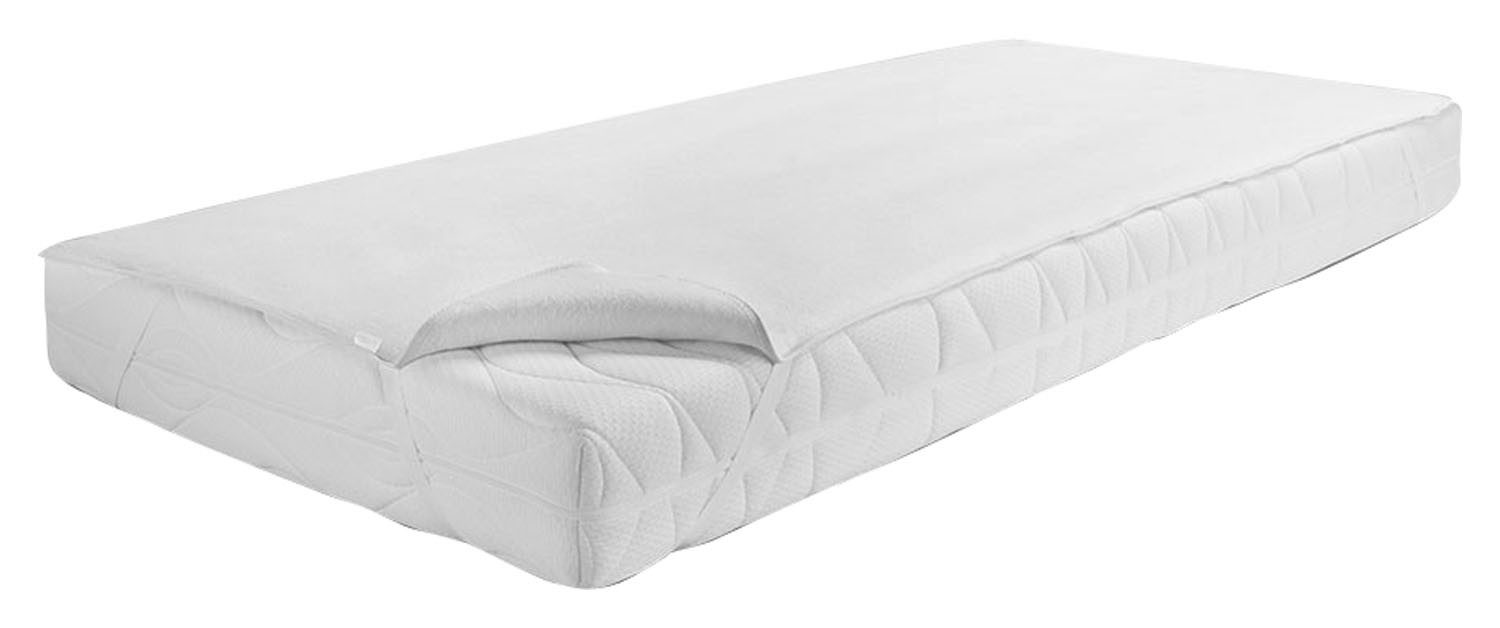 Die Matratzenauflage BISLA von PRONIGHT besteht aus weißer Baumwolle und wird in Deutschland hergestellt. Sie ist mit einer wasserdichten Zwischenschicht ausgestattet, die die Matratze schützt. Vier Eckgummizüge sorgen für einen sicheren Halt auf der Matratze. Mit den Maßen 100 x 200 cm passt sie auf Standardmatratzen. Die Auflage ist trocknergeeignet, was die Pflege besonders einfach macht.