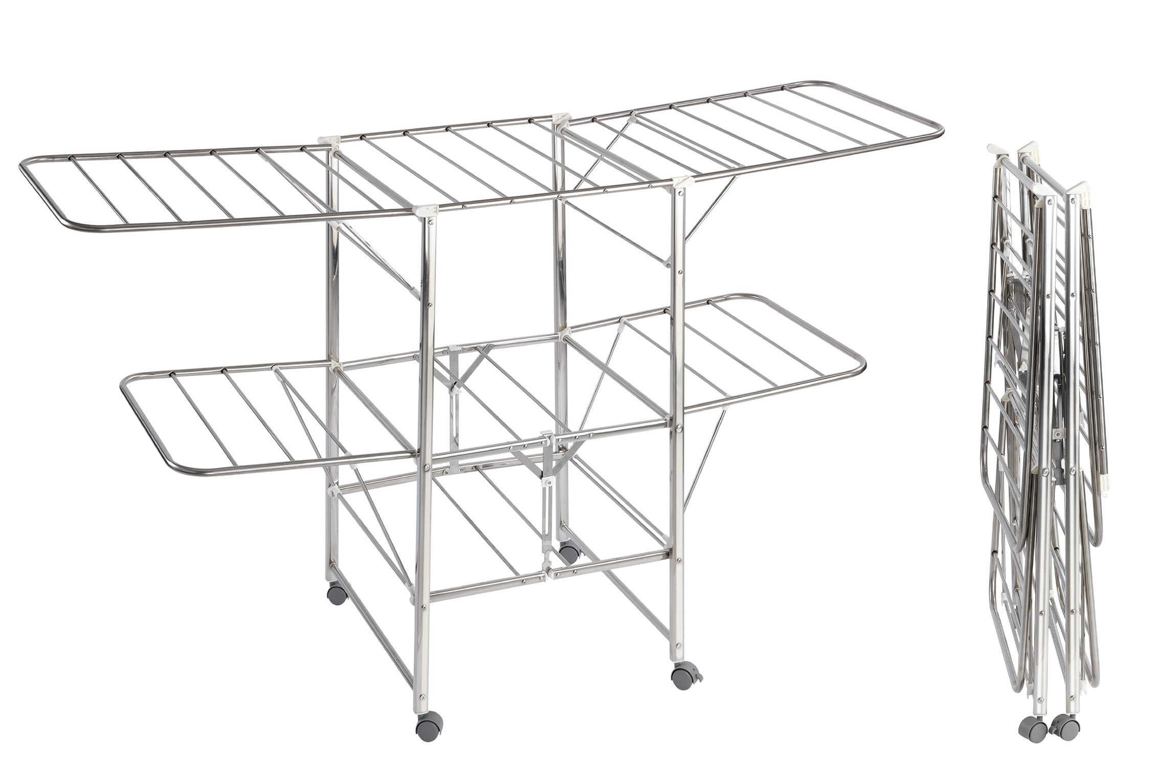 Maximex Flügelwäschetrockner Modell Mobil, Wäscheständer mit 2 Etagen und 4 Flügeln, 27 m Trockenlänge, Edelstahl