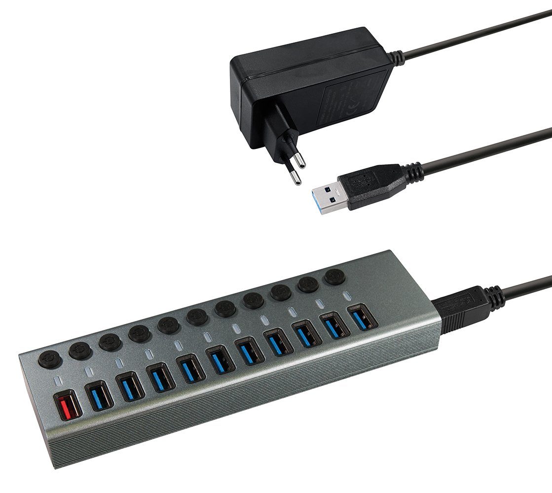 Mit 10 USB 3.0 Anschlüssen und einem zusätzlichen Ladeport mit 2,4A vereint dieses kompakte Kraftpaket maximale Konnektivität mit praktischer Ladepower.