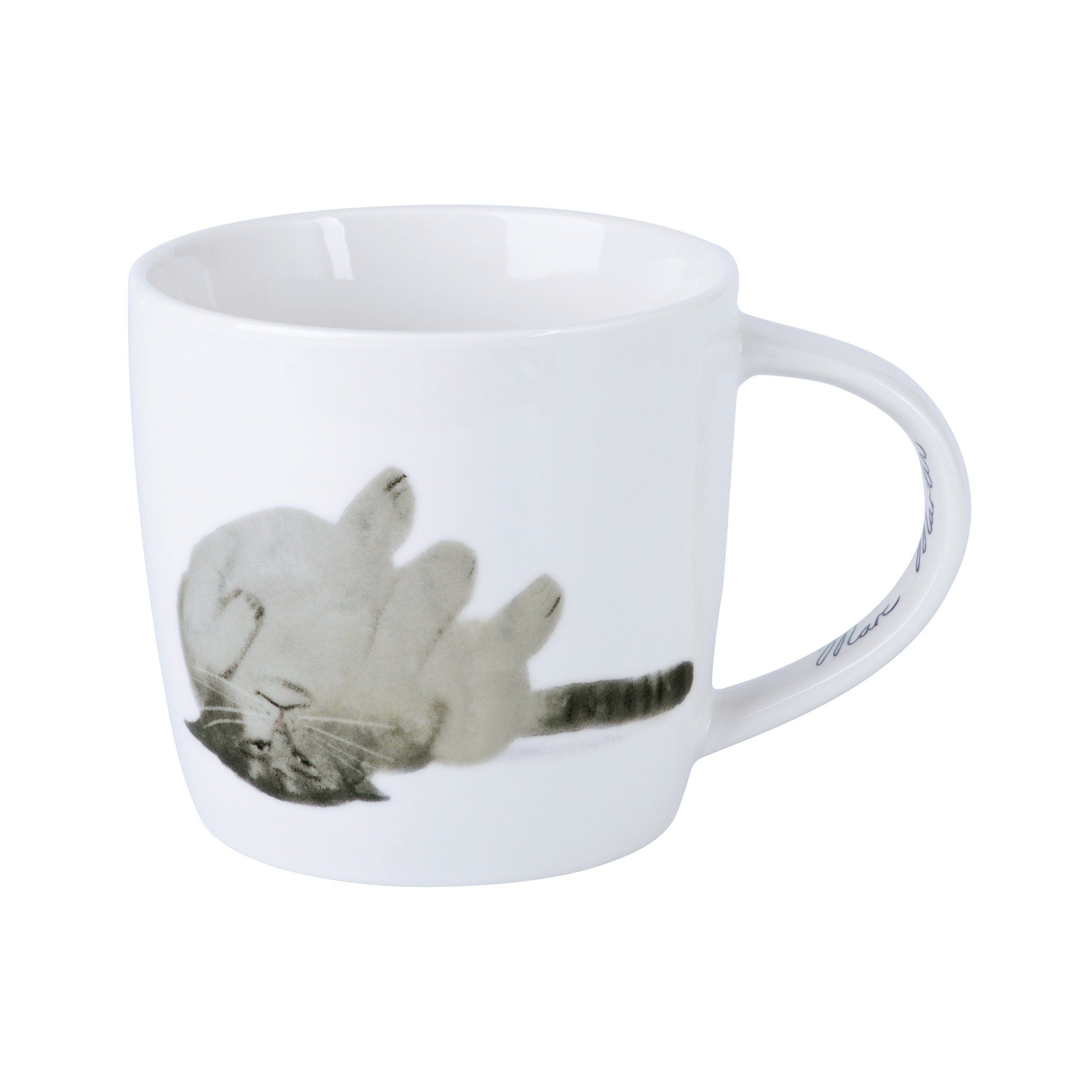 In Videoclips sind sie ohne Frage die gefeierten Superstars: Doch Mieze und Co rocken nicht nur das Internet, auch in der neuen Kollektion Felline Friends von Marc Martin sind sie die absoluten Alltagshelden. So wie diese äußerst coole Katze: Sie streckt alle Viere von sich und findet, um die Welt auf den Kopf zu stellen, gibt es keinen besseren Platz als den weiß grundierten Henkelbecher. Auch zum Trinken ist der tierisch hübsche Becher natürlich top. Für Kaffee, Tee, leckeren Kakao und selbstverständlich auch für (heiße) Milch ...