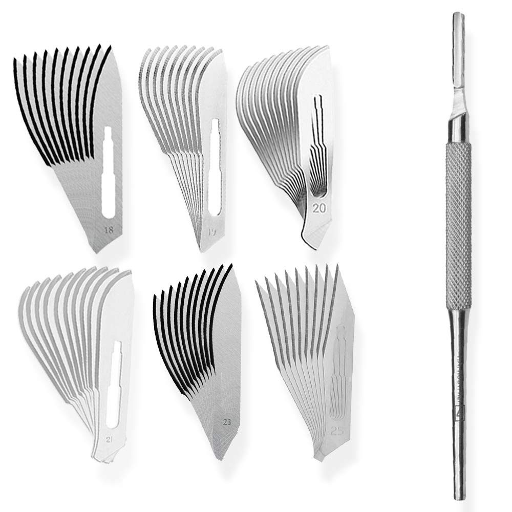 • Dieses Bundle besteht aus 1 x Skalpell-Halter mit 15,5 cm langem Griff - Skalpellgriff Fig. 4 und je 10 Stück passenden Klingen Figur 18, 19, 20, 21, 23 und 25