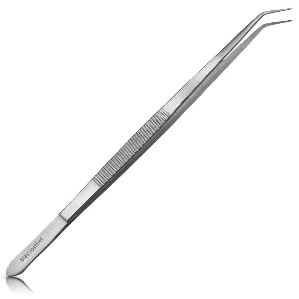 May Präzisionspinzette Technische Pinzette feine und gebogene Spitze 25 cm lang