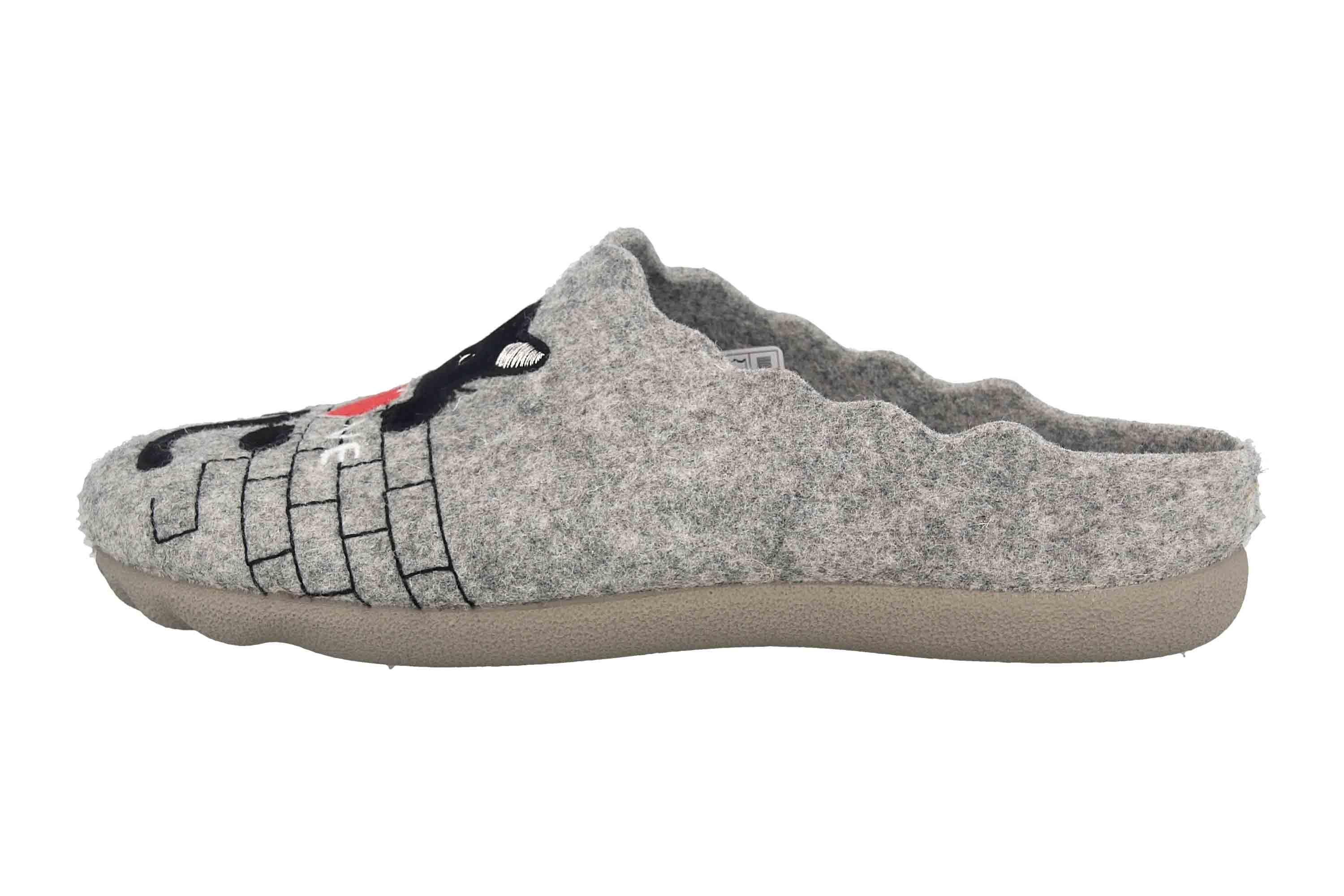 Bei diesem formschönen Schuh der Marke MayBe handelt es sich um ein Modell aus der Kategorie Clogs & Hausschuhe. Diese Damenschuhe in der Farbe Grau überzeugen durch ein klares Design und unterstreichen die aktuelle Schuhmode. Große Schuhe von MayBe lassen sich perfekt mit dem urbanen Modegeist kombinieren und verleihen jedem modernen aber auch einem klassisch-sportivem Outfit den passenden Schliff. Das Außenmaterial bei diesem Modell wurde aus Filz hergestellt, als Innenmaterial wurde Filz verwendet. Bei diesen Schuhen kann als Weite Bequeme Weite (G) berücksichtigt werden. Die Gummi-Sohle sorgt jederzeit für einen guten Auftritt und ein mit einer Höhe von 0,5 cm sorgt für die harmonische Silhouette.