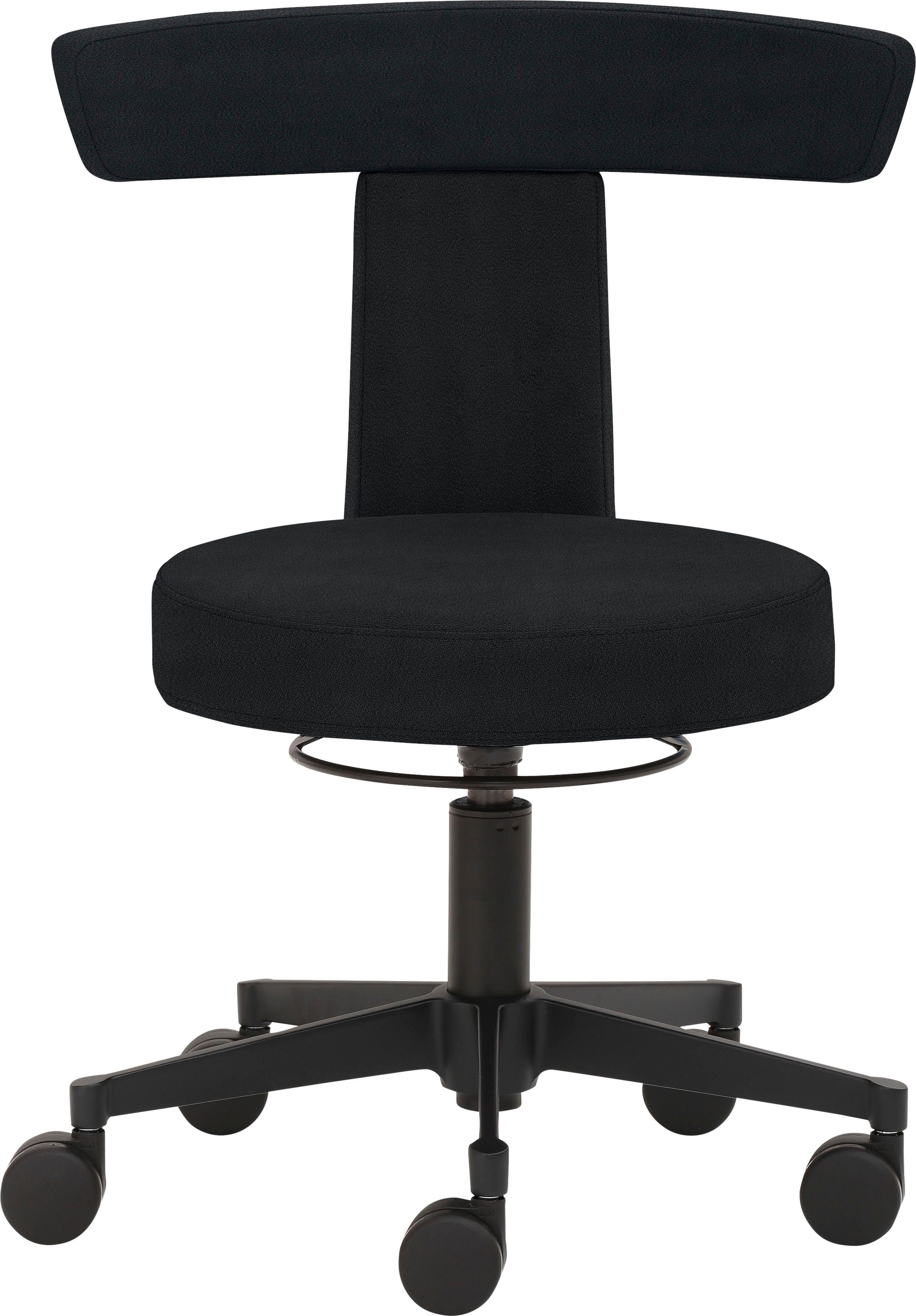 Ausführung | Polyamid-Fußkreuz schwarz (ø 52 cm) Rollen für Teppichböden Rücken mit Höhenverstellung in Rastertechnik Tellersitz und Rücken gepolstert |