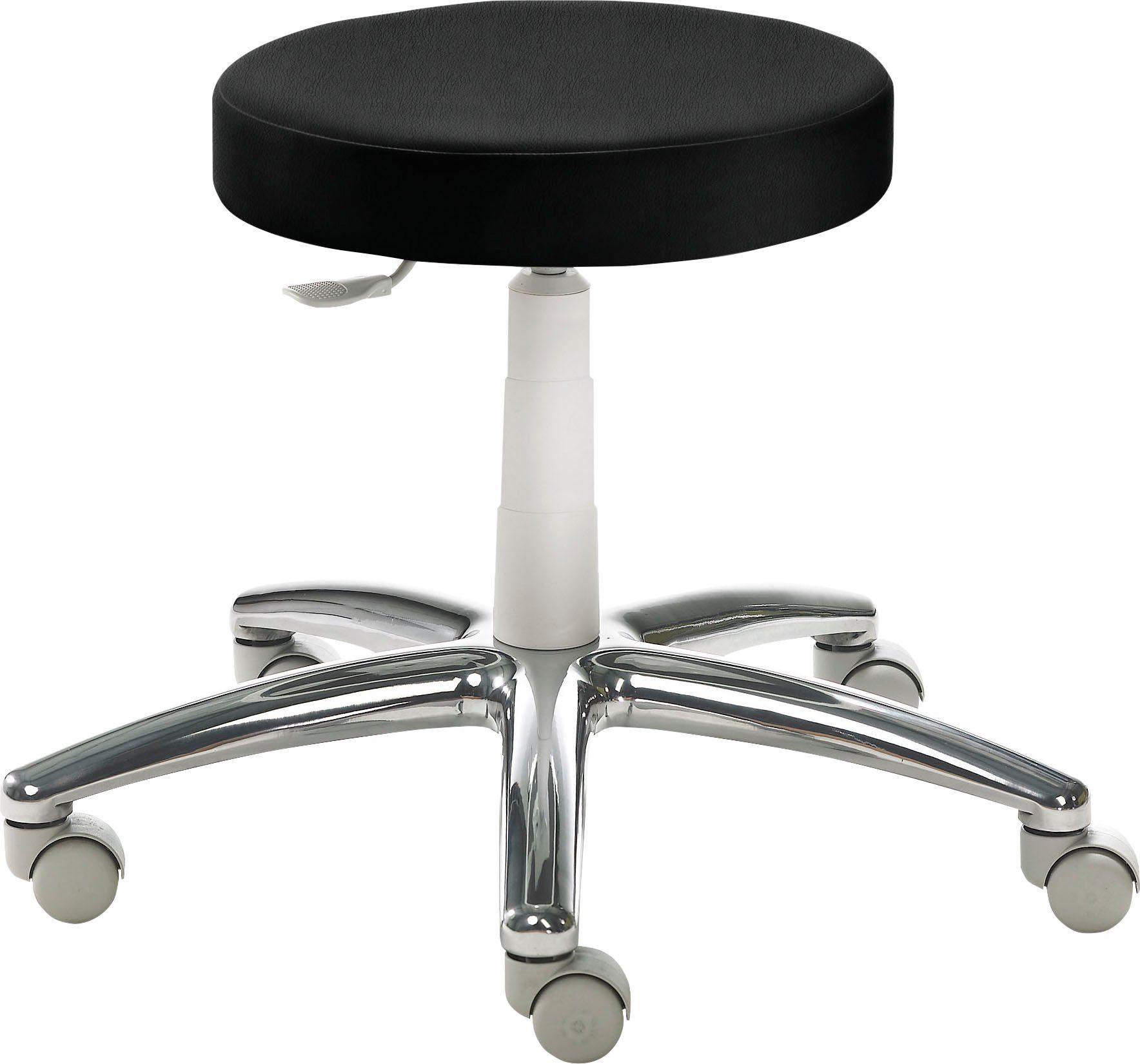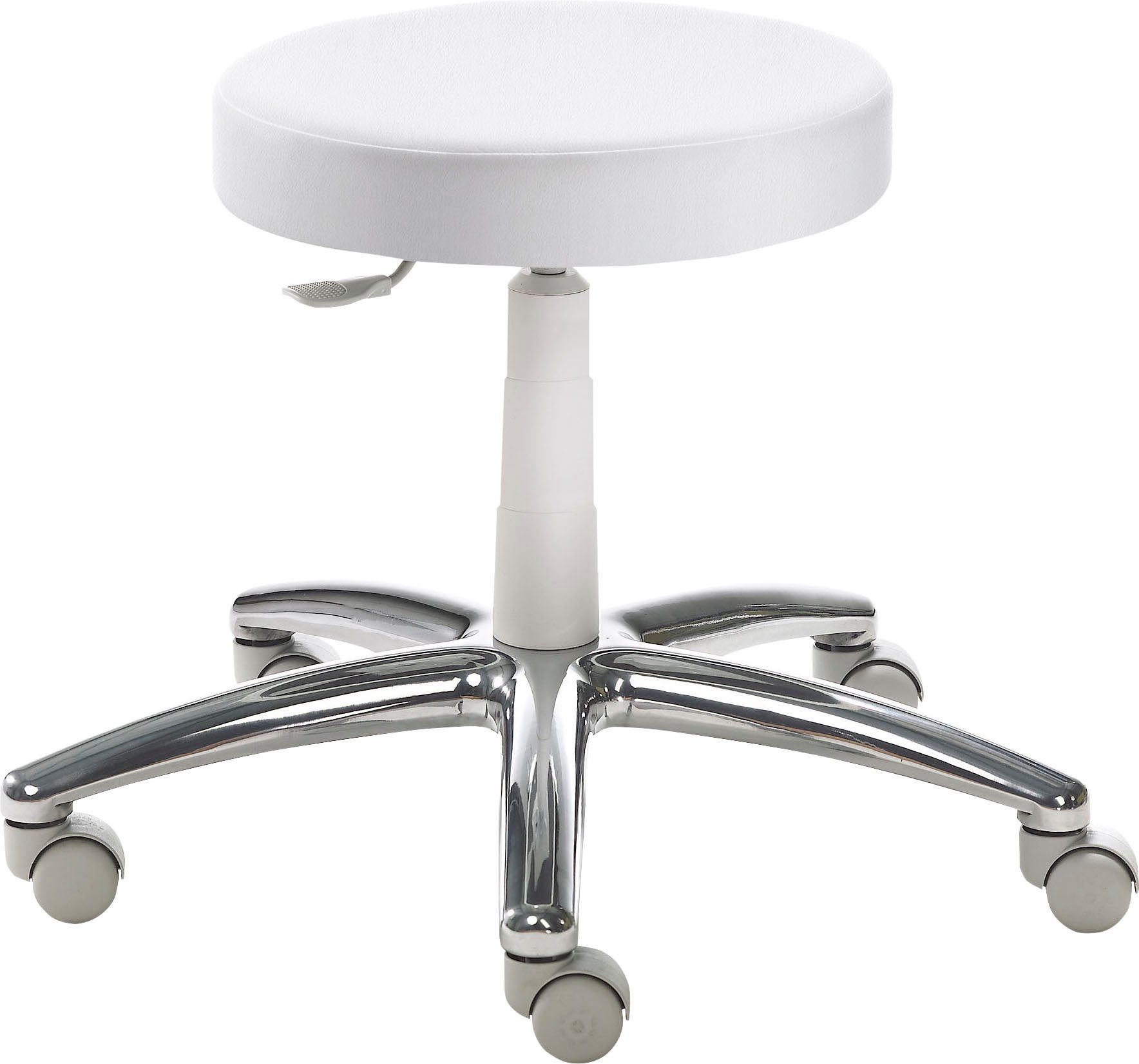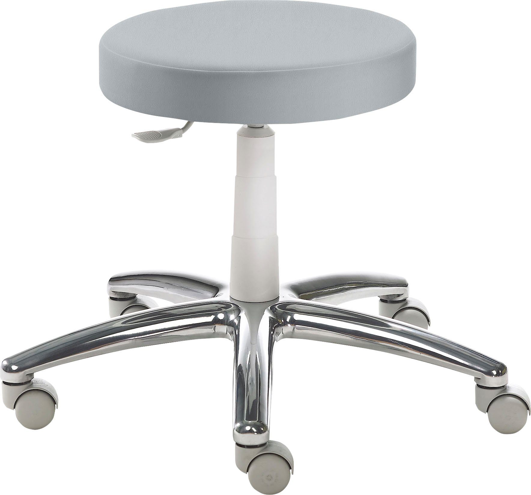Ausführung | Alu-Fußkreuz poliert Gestell lichtgrau RAL 7035 gepolsterter Tellersitz höhenverstellbar |