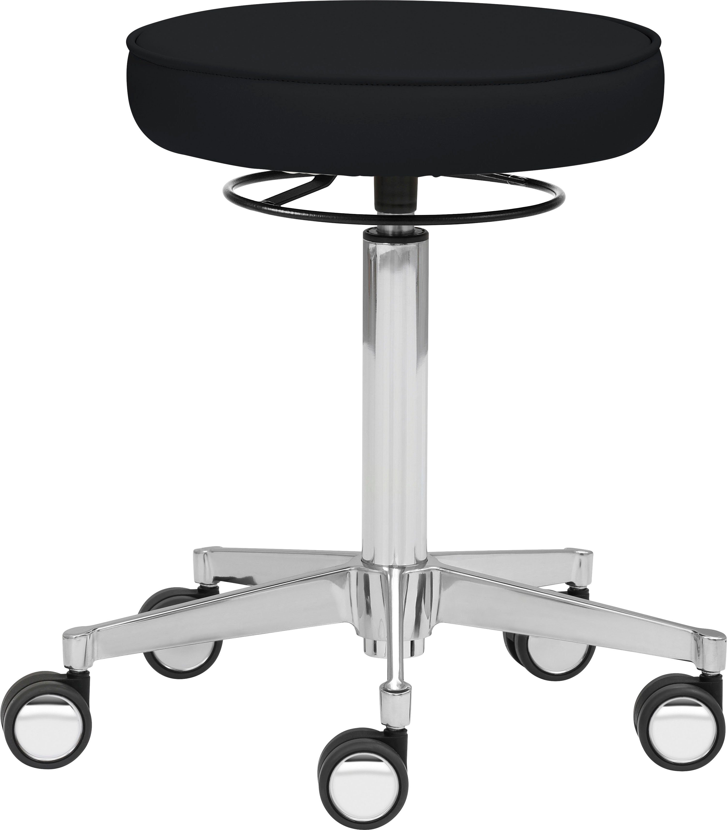 Ausführung | 360° Bewegungsfreiheit Hartbodenrollen mit Chromblende gepolsterter Physioteller hohe Chrom-Gasfeder höhenverstellbar |