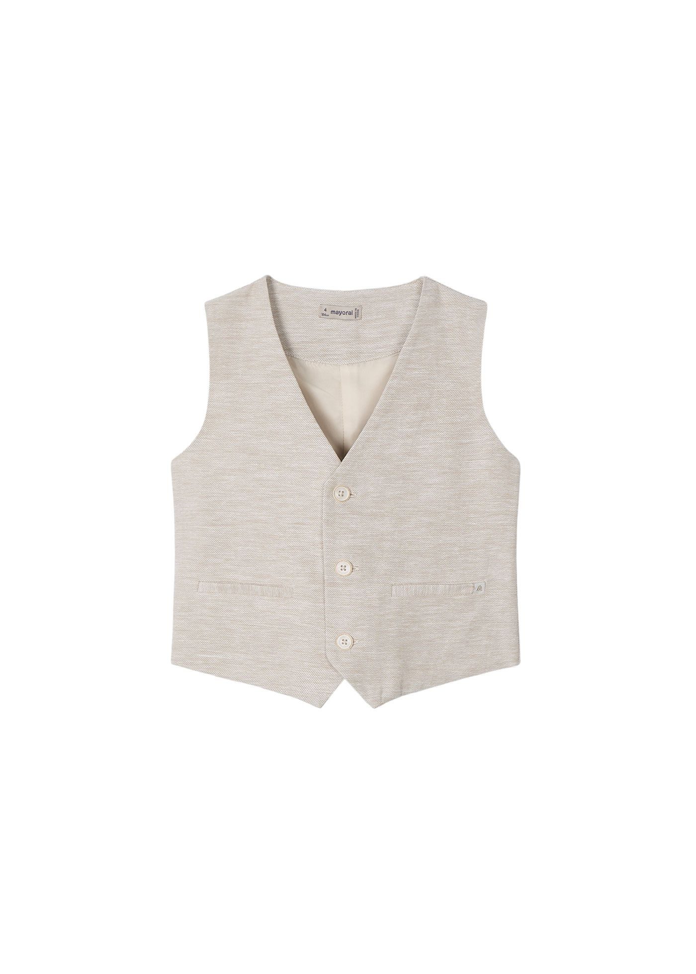 Die Mayoral Weste für Jungen ist ideal für festliche Anlässe wie Taufen und Hochzeiten. Gefertigt aus 90% Baumwolle und 10% Leinen, bietet sie eine atmungsaktive und angenehme Tragequalität, ergänzt durch ein Innenfutter aus 100% Polyester für eine glatte Passform. Die Weste verfügt über einen klassischen Knopfverschluss und praktische Taschen, die sowohl Funktionalität als auch Stil bieten. Dieses elegante Kleidungsstück ist maschinenwaschbar und verbindet Komfort mit formeller Eleganz, ideal für junge Gentlemen bei besonderen Ereignissen.