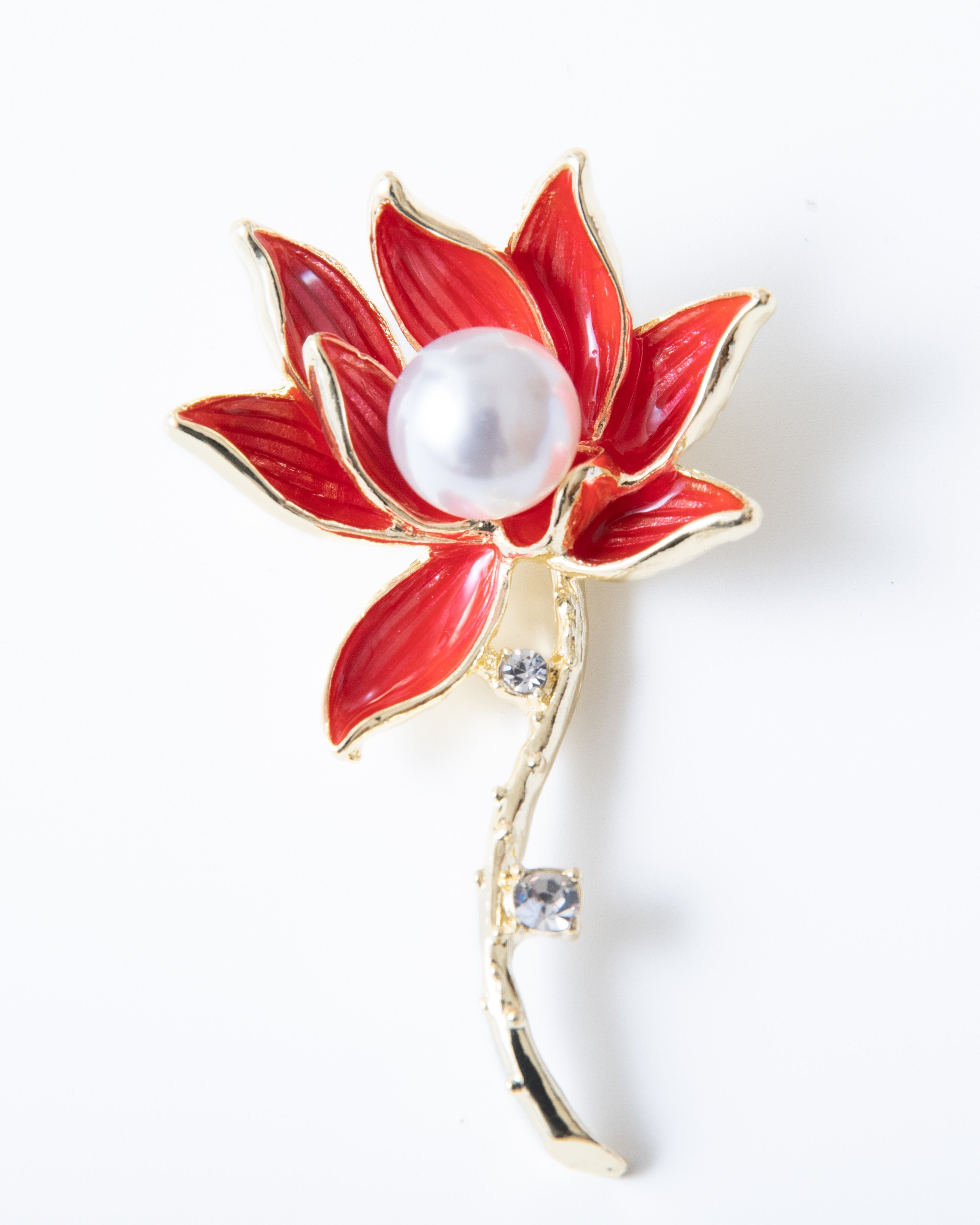 Besondere Merkmale | Metallbrosche mit Glassteinen, Strass und einer Zierperle |