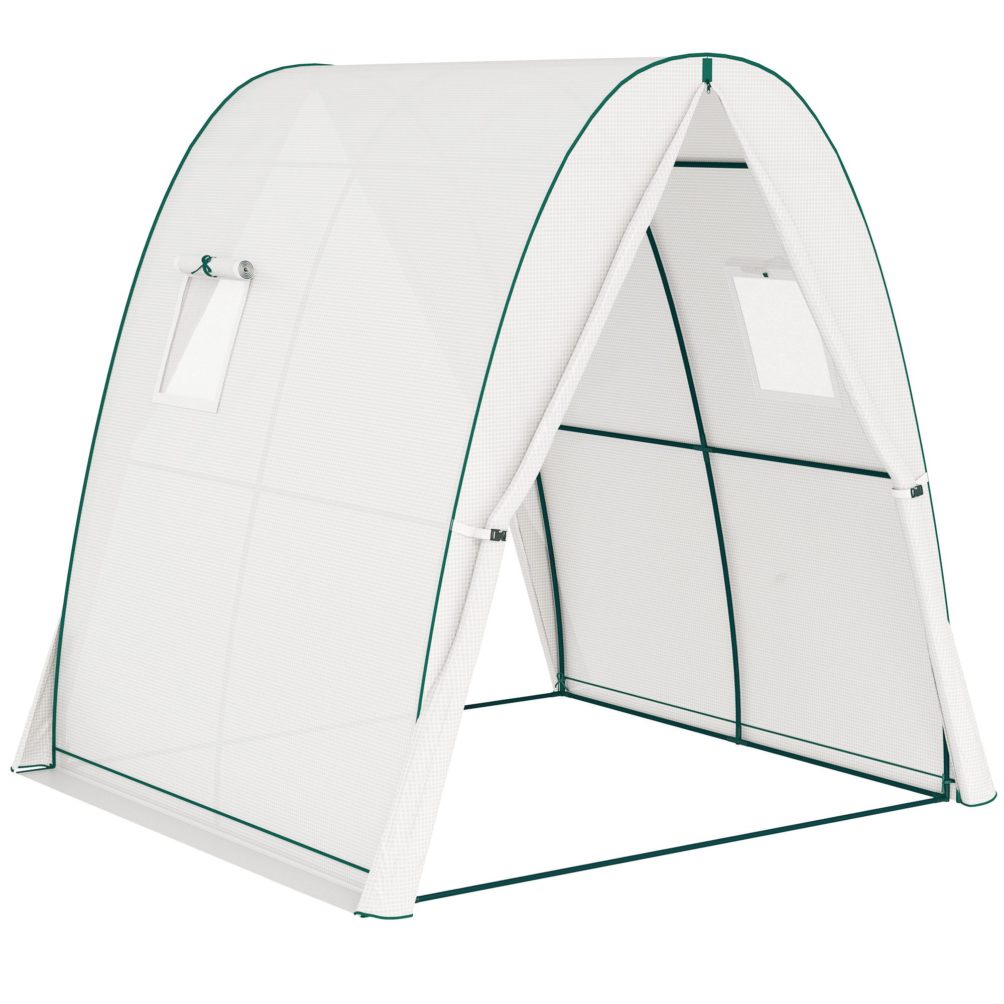 Einfacher Zugang und Belüftung: Mit zwei Reißverschlusstüren an Vorder- und Rückseite ermöglicht das Gewächshaus einen leichten Zugang für die Pflege der Pflanzen. Die beiden seitlichen Netzfenster sorgen für Belüftung und verbessern die Luftzirkulation