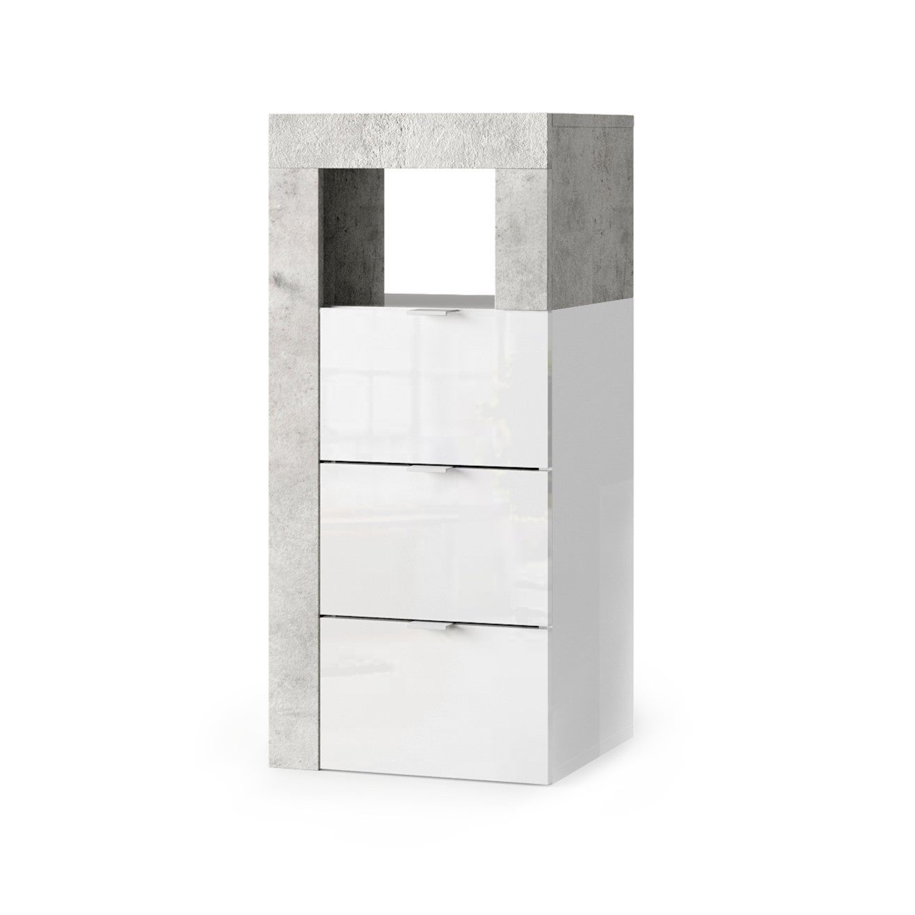 Wissenswertes | Maße B/T/H offenes Fach oben - bis zu den Blenden: 22/33,5/16,5 cm max. Belastbarkeit Oberboden 20 kg max. Belastbarkeit Schubkasten 5 kg max. Belastbarkeit offenes Fach 10 kg |