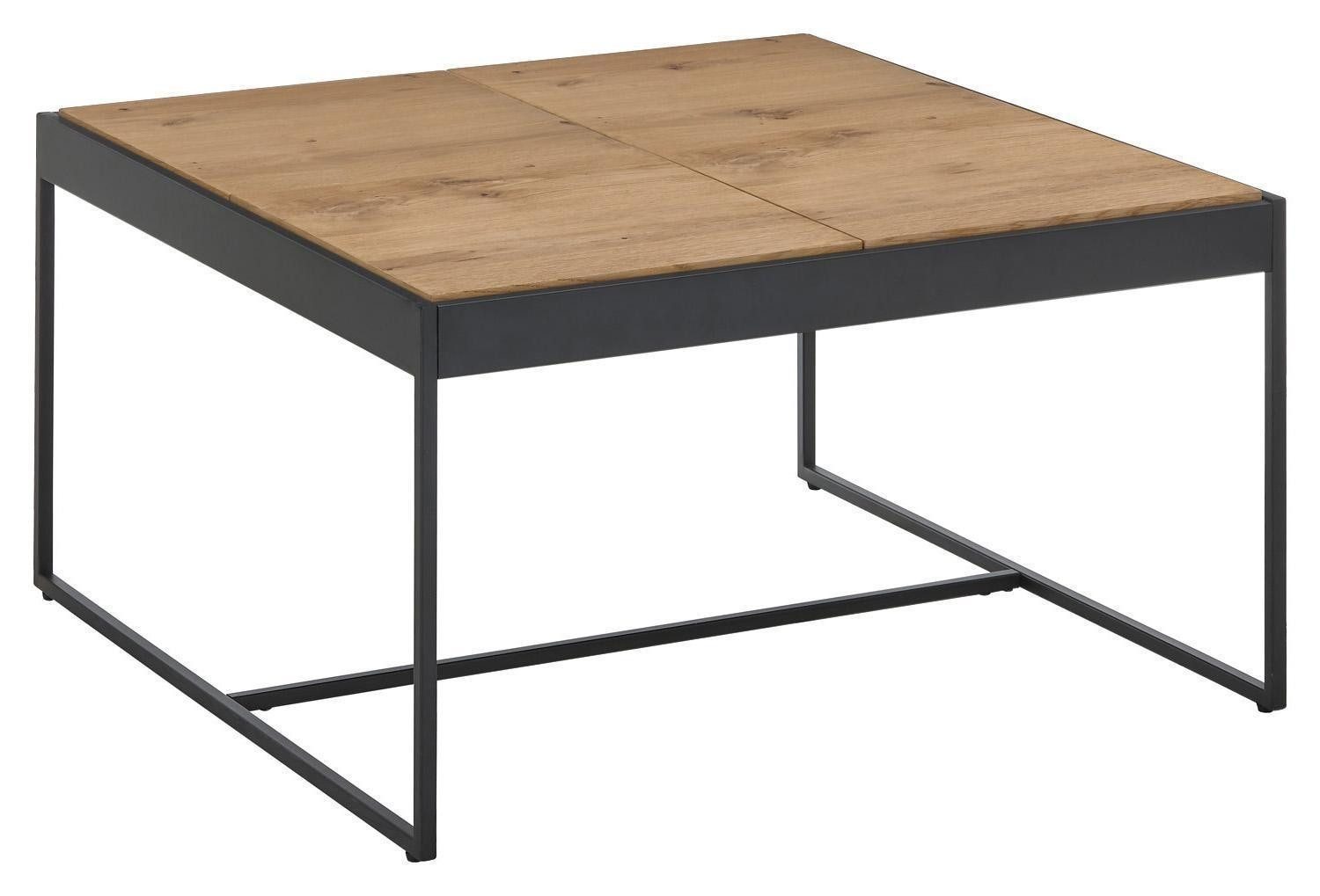 Der Couchtisch LARKANA von MCA Furniture vereint modernes Design mit Funktionalität. Die möblierte Eichenplatte in 83 x 83 cm bietet durch vier drehbare Tabletts maximale Flexibilität und ist ideal für den Landhaus-, Modern- oder Scandi-Stil. Das matte, schwarze Metallgestell sorgt für einen stabilen Stand und harmoniert perfekt mit der geölten Oberfläche des Holzes. Der Tisch wird teilmontiert geliefert und ist ein vielseitiger Hingucker für jedes Wohnzimmer.