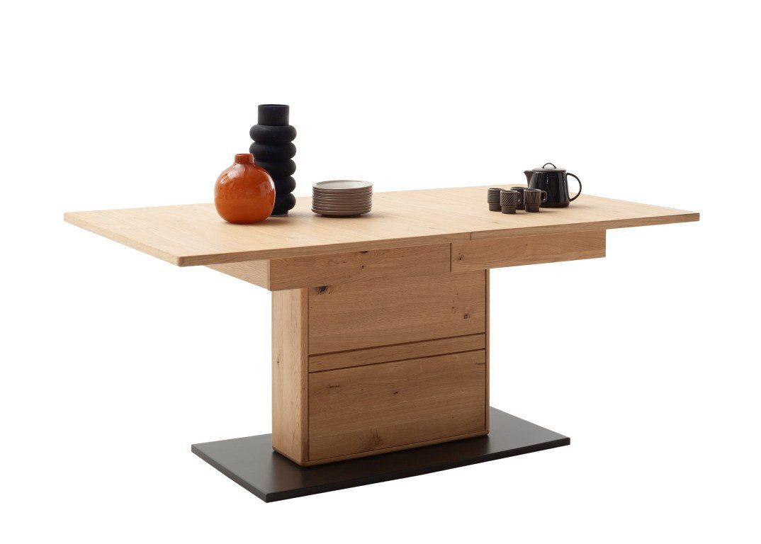 Tischplatte: Ast-/ Balkeneiche massiv durchgehende Lamelle in Kristalleiche geölt
