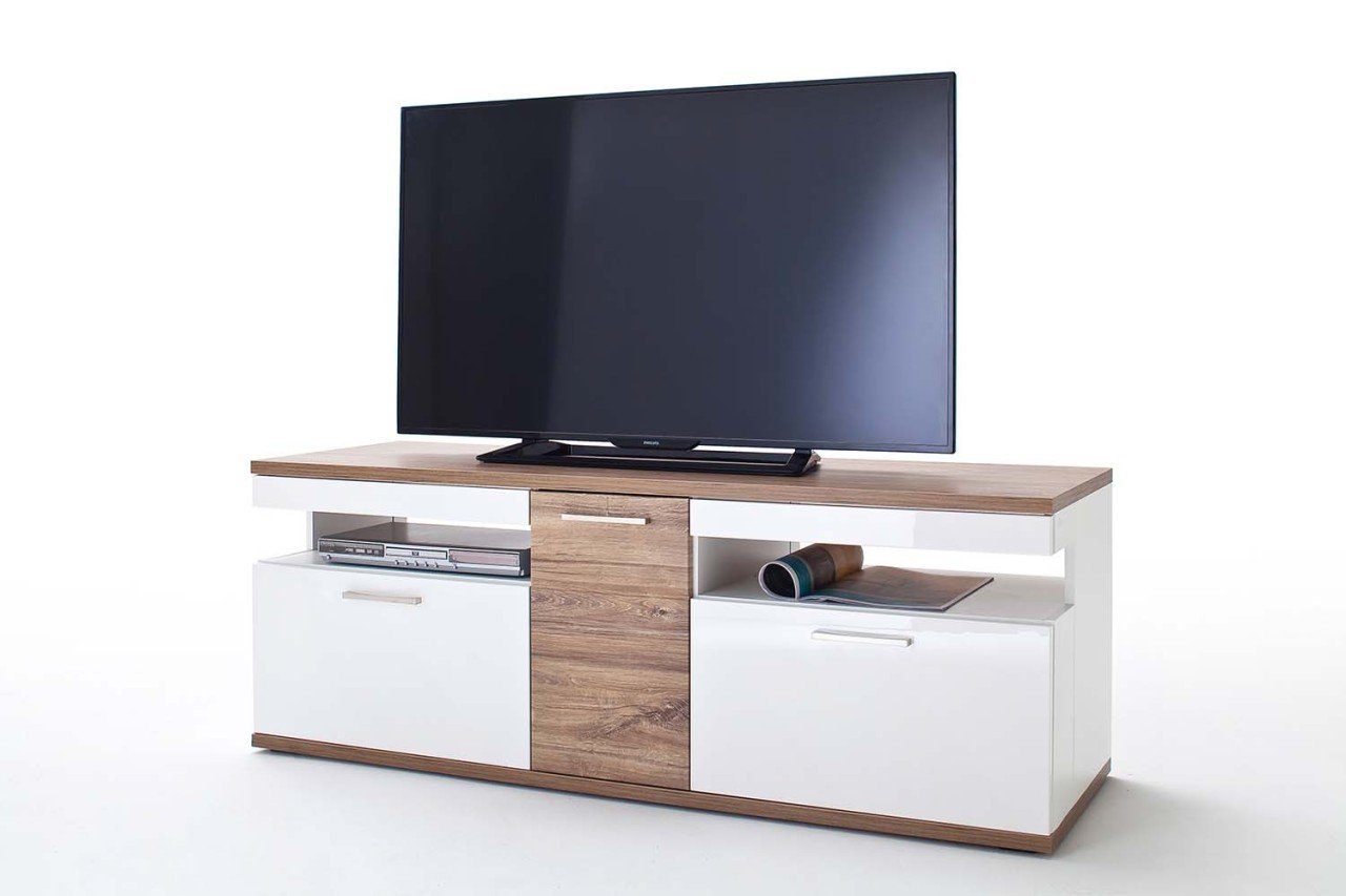 1x Lowboard Luzern - Weiß Hochglanz / Sterling Oak