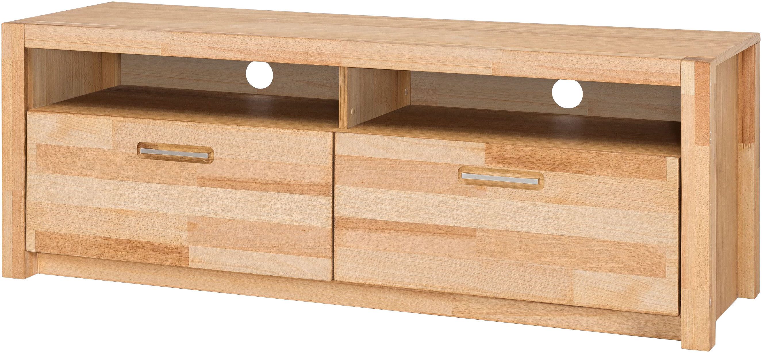 Du suchst einen TV-Schrank, das nicht nur optisch was her macht, sondern auch besonders langlebig und stabil ist? Dann solltest du einen Blick auf dieses Lowboard »Fenja TV-Element, Kommode,TV-Möbel,Breite 155 cm« von MCA living werfen. Die Schubladen lassen sich komplett ausziehen und bieten dir weitere Unterbringungsmöglichkeiten. Einen schönen Schimmer bekommt das Holz dank der geölten Oberfläche, die seinen individuellen Charakter noch betont. Die Griffe aus Metall sind stabil und nutzen sich daher nicht so schnell ab. Der TV-Schrank steht auf Sockeln aus Massivholz. Dieser sorgt für einen schönen Abschluss. Belastbar ist dein neues Möbelstück mit bis zu 30 Kilogramm. In Polen wurde das Produkt hergestellt.