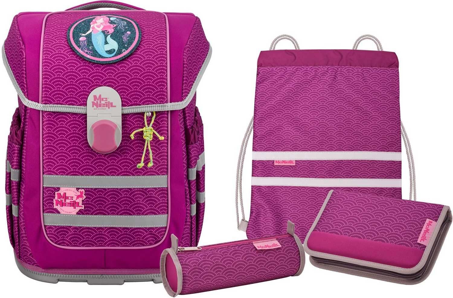 McOcean – der erste Schulranzen aus recyceltem Ocean-Plastik. Der Stoff besteht aus PUNTOPINKQUAL-Garn, dieses Garn wird aus Plastik hergestellt, welches aus dem Ocean gefischt wird. Das Innenfutter wird aus recycelten PET-Flaschen gefertigt und die Anhänger aus alten Fischernetzen. Dazu kommt, dass McNeill in Deutschland fertigt. So wird pro Ranzen ca. 4kg CO2 eingespart. Wie bei allen Modellen überzeugt auch der McOcean mit dem innovativen Smart-Flex Tragesystem. Durch das höhenverstellbare System kann der Schulranzen an den Körperbau des Kindes angepasst werden und wächst mit. Das hochwertige Rückenpolster ist ergonomisch geformt und besitzt, für ein leichtes und gutes Tragegefühl, einen Lendenwirbelschutz. Die Schultergurte sind weich gepolstert und bieten einen hohen Tragekomfort für Ihr Kind. Der höhenverstellbare Brustgurt und der abnehmbare Beckengurt sorgen für zusätzliche Entlastung der Schultern. Auf der Frontseite besitzt der Schulranzen ein leicht bedienbares und stylisches Magnetschloss. Die McNeill Doppelstreifen bieten zusätzliche Sicherheit in der Dunkelheit. Sie sind aus retroreflektierendem Material und werfen auftreffendes Licht zurück. So ist Ihr Kind im Straßenverkehr besser sichtbar. Vor Feuchtigkeit und Schmutz ist der McNeill McOcean durch die stabile Bodenplatte geschützt. Durch die durchdachte Innenaufteilung behält Ihr Kind immer den Überblick.