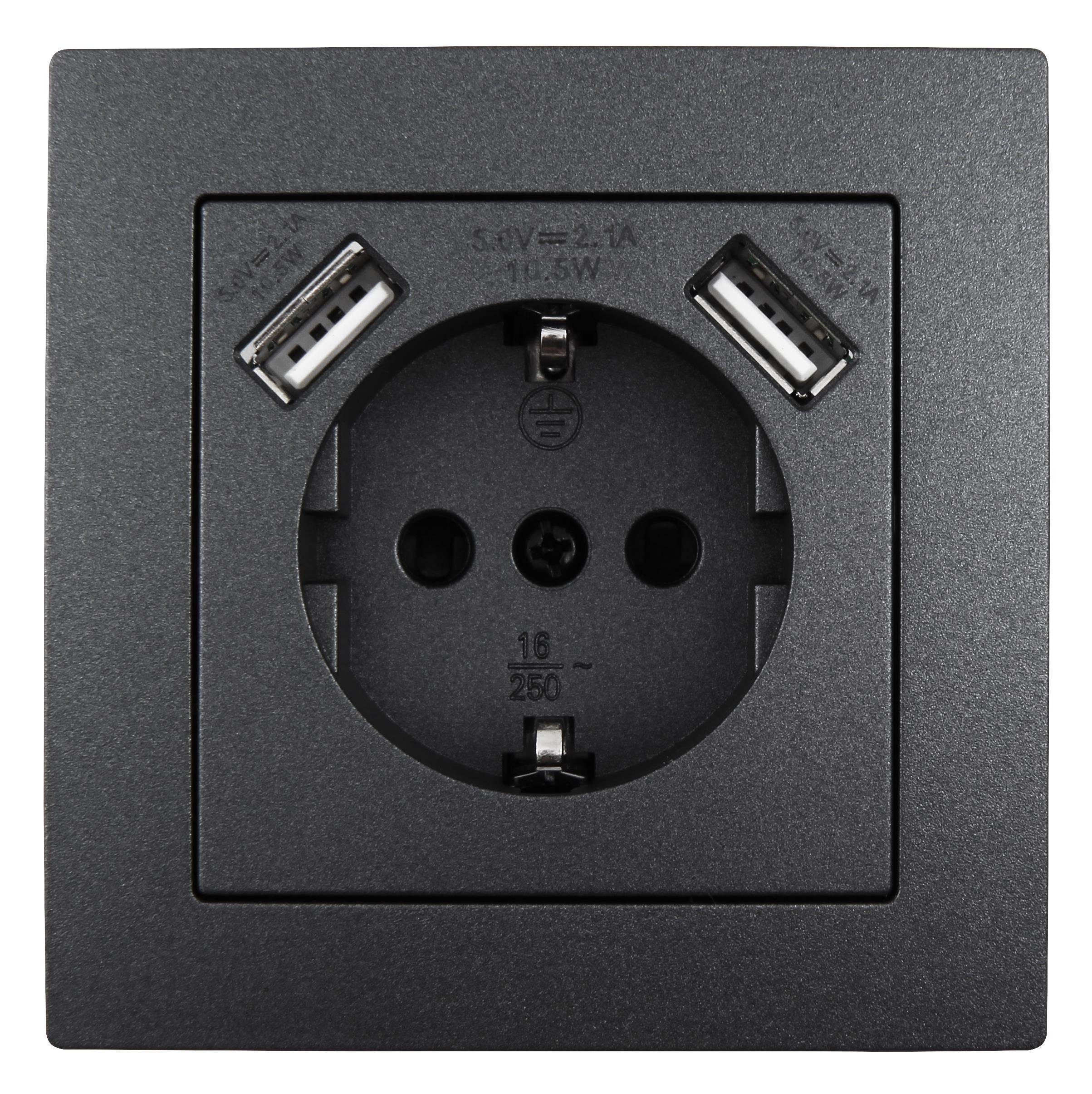 McPower Steckdose Schutzkontakt-Steckdose mit 2x USB McPower Flair, 250V, 5V/2,1A, UP
