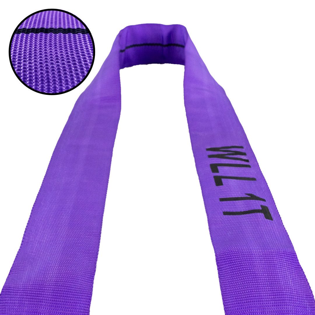 Die Rundschlinge ist aus einem hochwertigen Polyester hergestellt. Die Tragfähigkeit dieses Hebegurts beträgt 1000 kg (WLL 1T). Zusätzlich zu dem eingenähten Tragfähigkeitsetikett verfügen die Rundschlinge über eingewebten schwarzen Tonnen-/ Kennstreifen (1 Streifen pro 1 Tonne). Daran wie auch an der Farbcodierung (1t - Farbe violett) lässt sich schnell und einfach erkennen, um welche Tragfähigkeit es sich bei Rundschlinge/ Hebeband handelt.