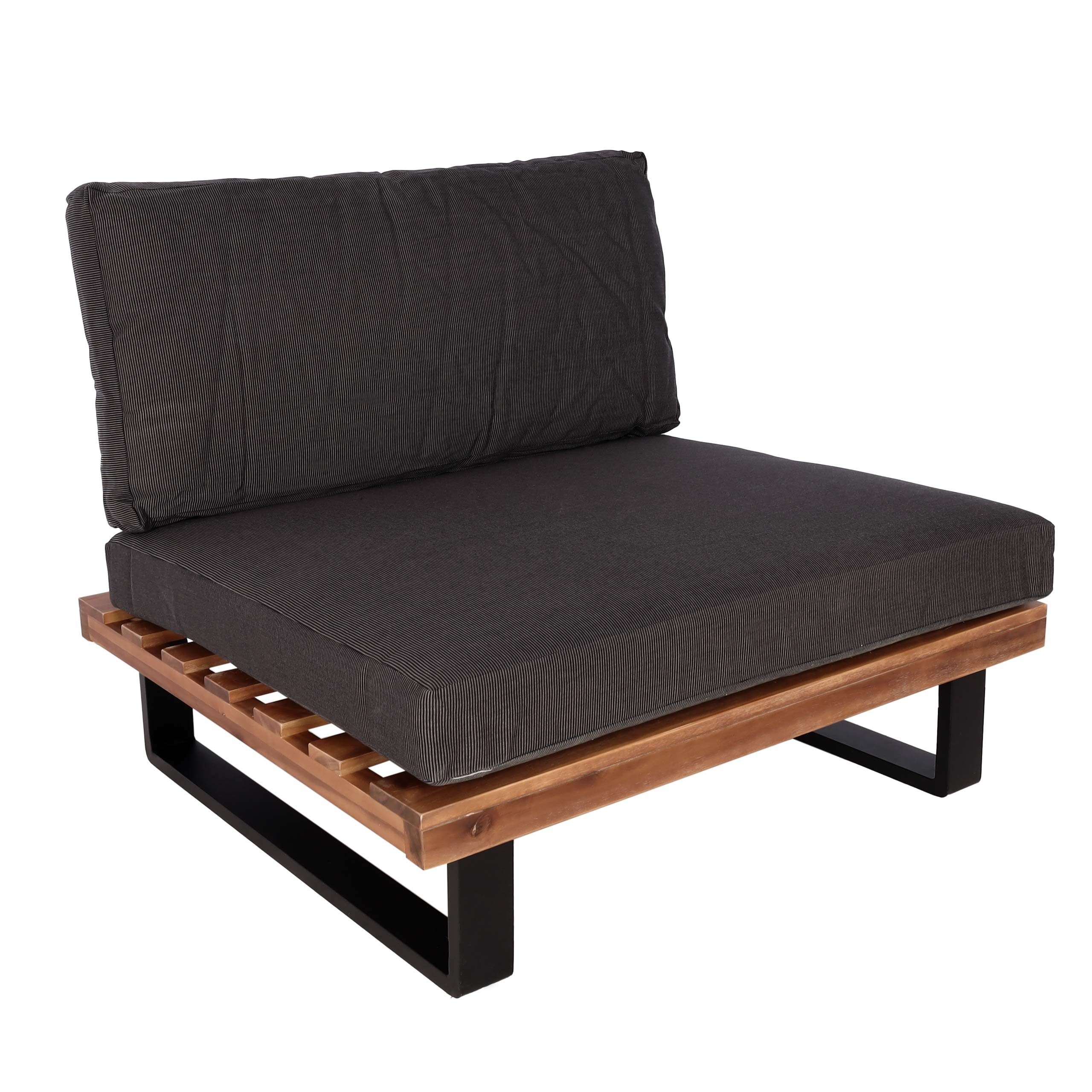 Materialzusammensetzung | Gestell: pulverbeschichtetes Aluminium,Elemente aus Holz: Akazienholz,Bezug: Stoff/Textil Spun Poly (100% Polyester, 230g/m²),Bodenschoner: Kunststoff |