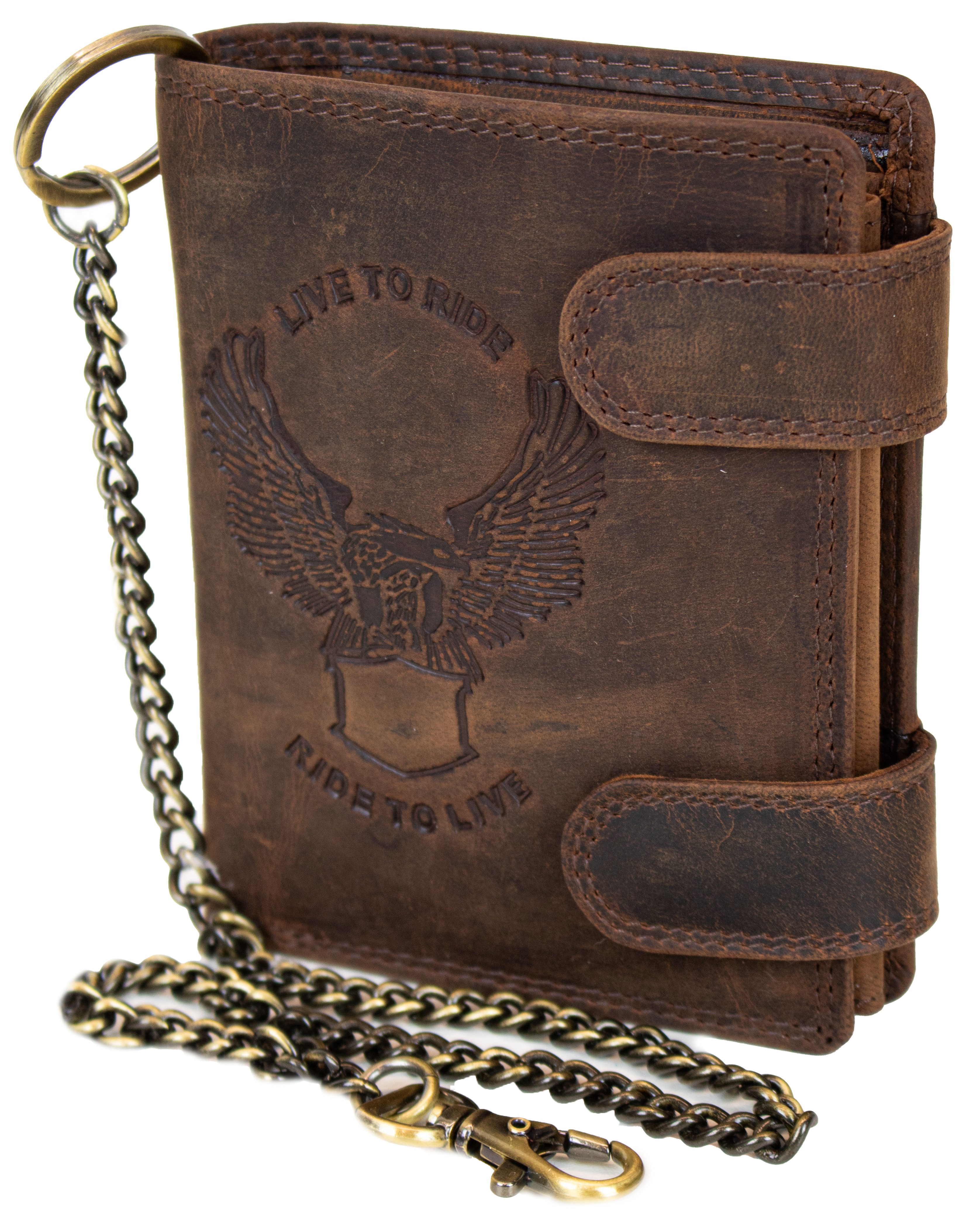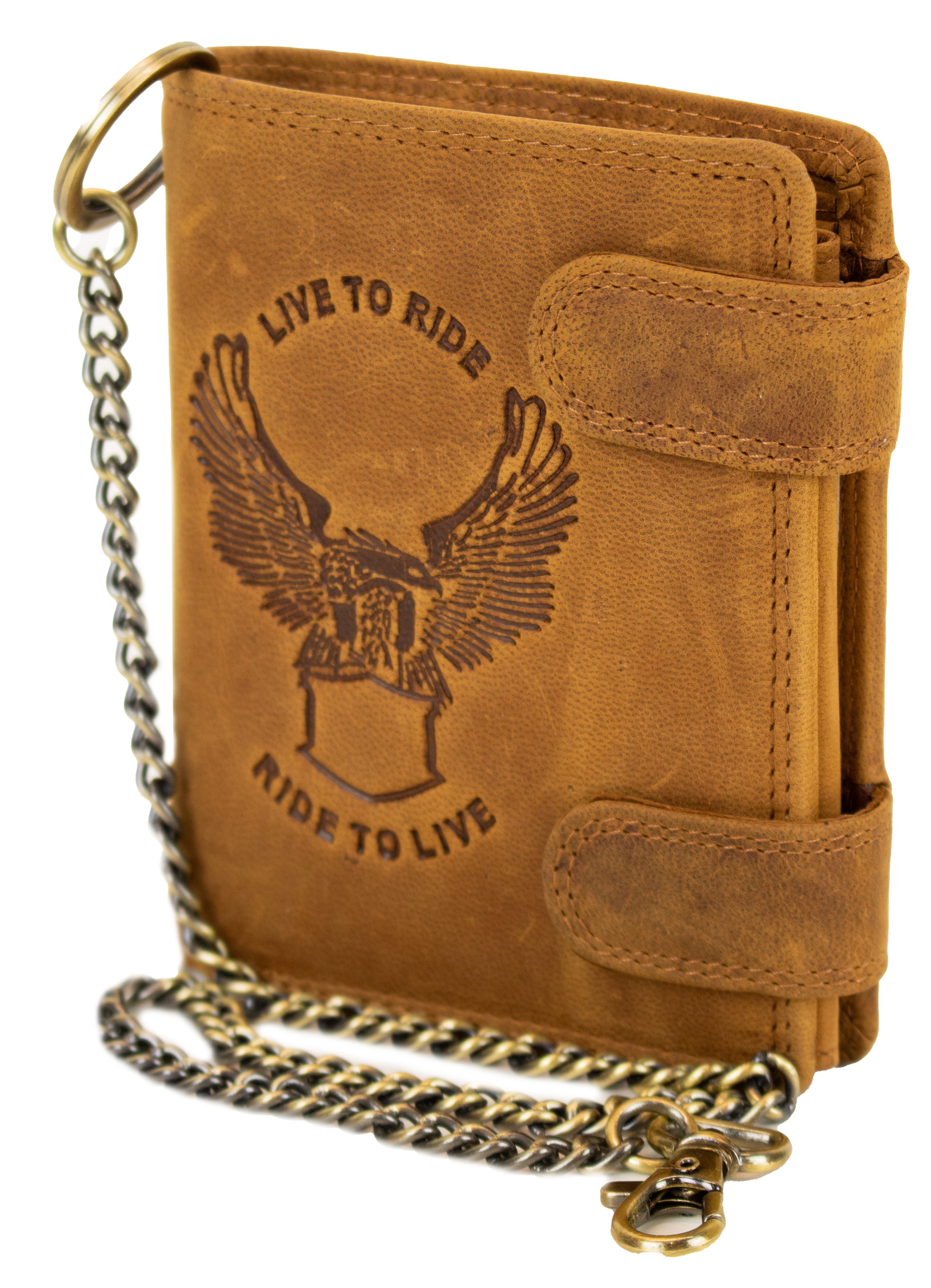 Hinweis Lieferumfang | 1 × Leder-Geldbörse mit Kette und Adler-Prägung |
