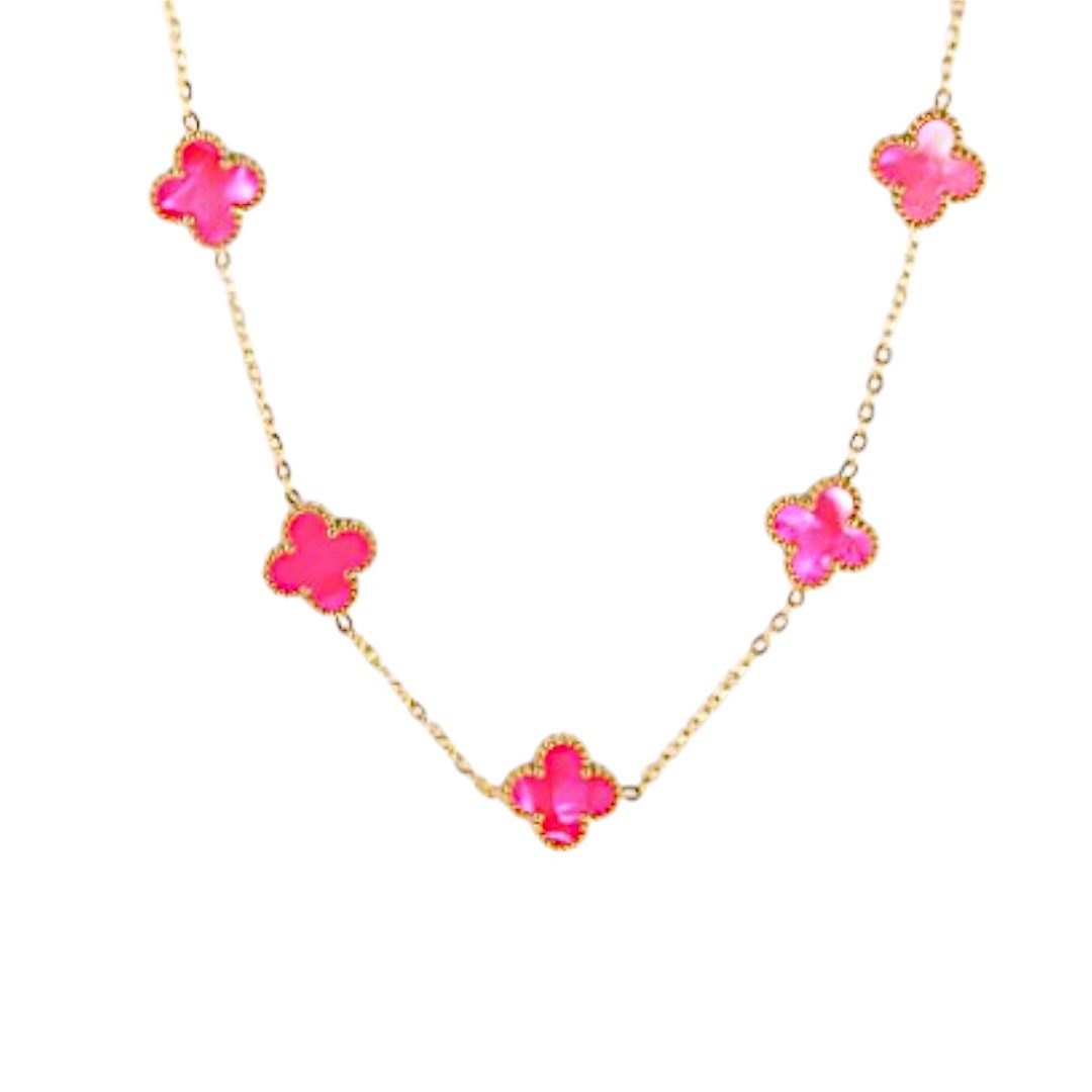 Glück & Eleganz in Rosé Diese bezaubernde Edelstahl-Halskette vereint zeitlose Eleganz mit einem Hauch von Romantik. Die filigrane, goldene Kette ist mit mehreren pinkfarbenen Kleeblatt-Anhängern verziert – ein Symbol für Glück, Stil und Lebensfreude. Highlights: Hochwertiger Edelstahl – rostfrei, langlebig & wasserfest Hypoallergen – sanft zur Haut & perfekt für den täglichen Gebrauch Strahlende pinkfarbene Kleeblätter – für einen femininen & modernen Look Elegantes Design – ideal für jeden Anlass, von casual bis chic Ein Glücksbringer mit Stil! Ob als modisches Highlight oder als bedeutungsvolles Geschenk – diese Kette verleiht jedem Outfit das gewisse Etwas.