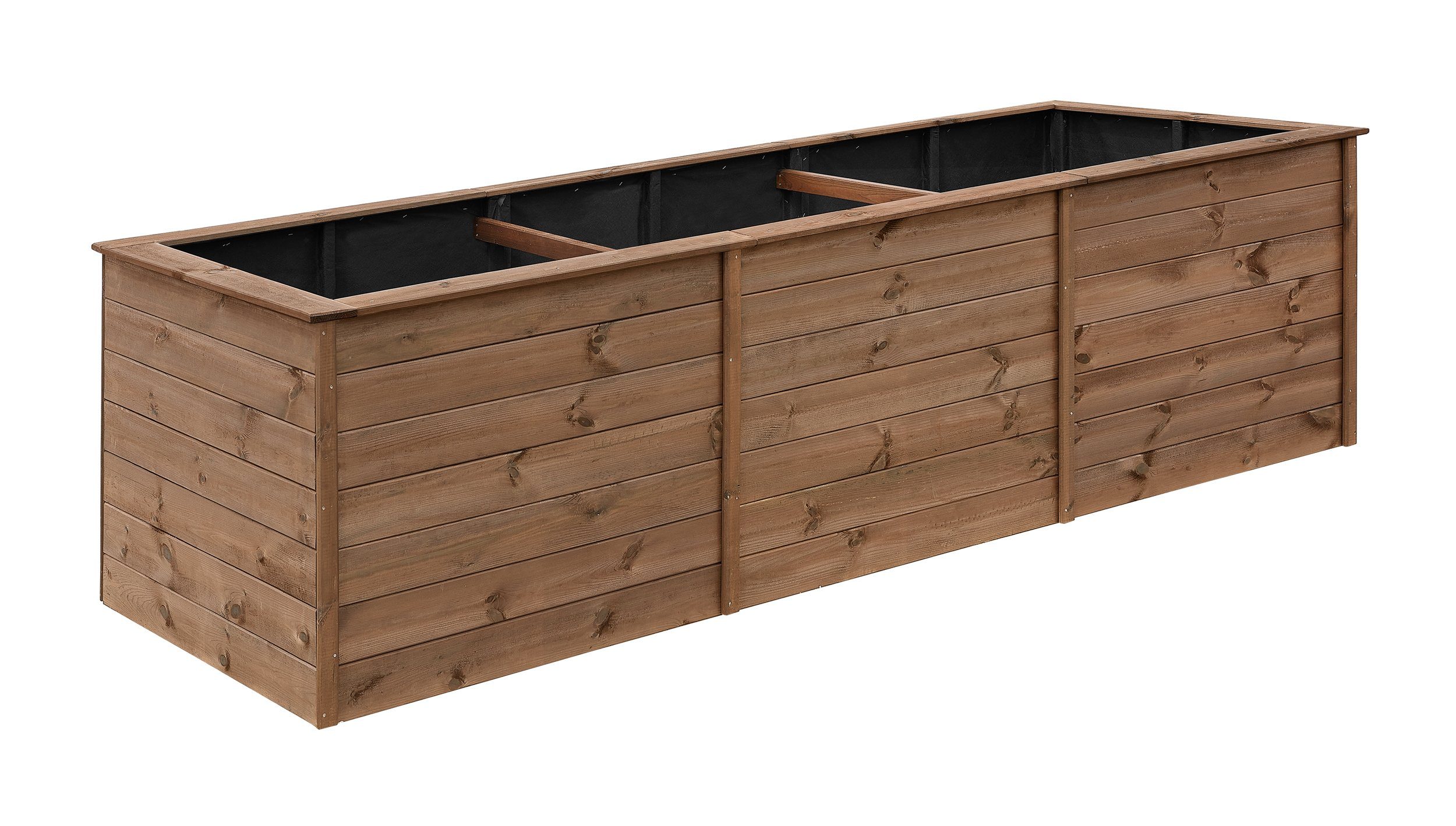 Die geballte Kräuterpracht wird von massiven, glatt gehobelten Holzprofilen beim Hochbeet ALMA XXL umrandet. Die braune Farbe passt zu vielen natürlichen Bauelementen.