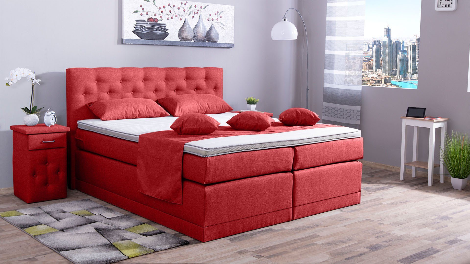 Ausstattung | Ohne Fußteil, Ohne Nachttisch, Ohne Truhe, 7 Zohnen Taschenfederkern Matratze, Härtegrad H3, Komfortschaum-Topper |