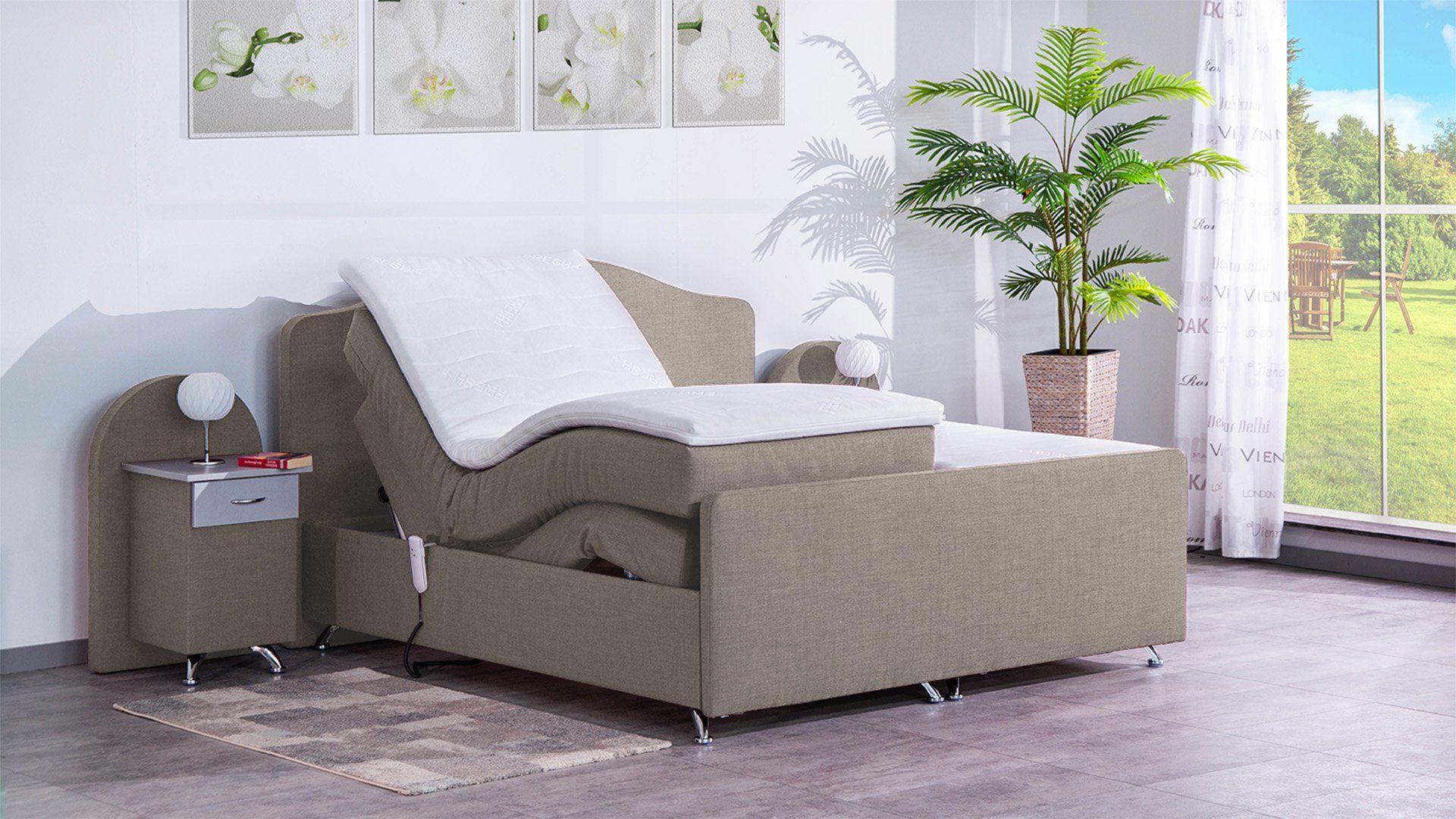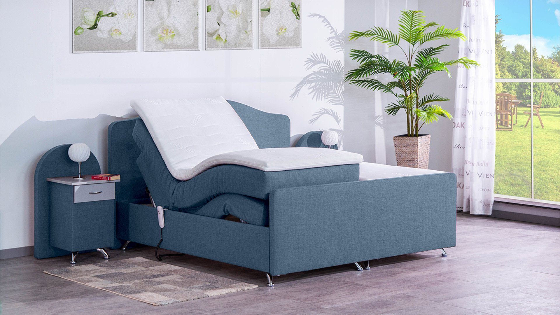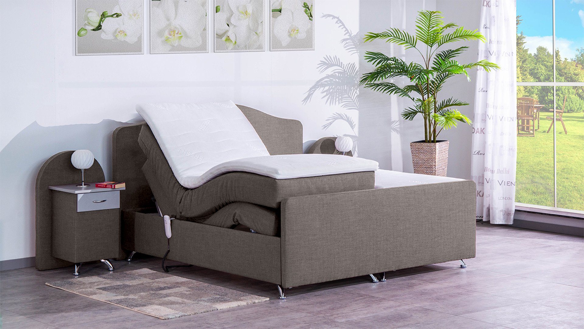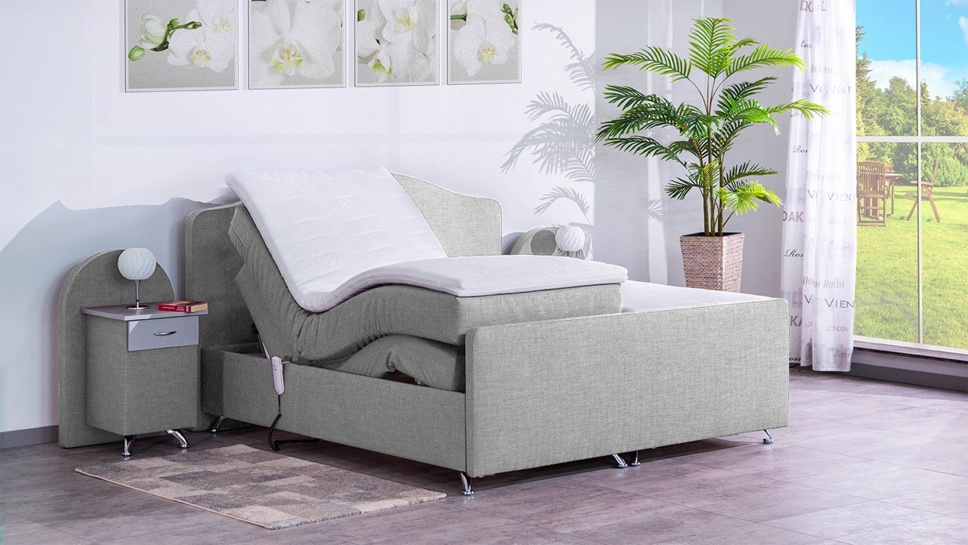 Ausstattung | Elektrische Höhenverstellung, Ohne Fußteil, Ohne Nachttisch, Ohne Truhe, 7 Zohnen Taschenfederkern Matratze, Härtegrad H3, Ergoflex-Topper |