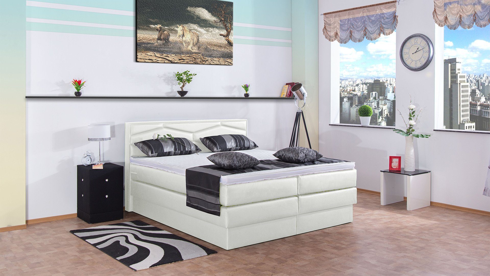 Ausstattung | Bettkasten seitlich zu öffnen, Ohne Fußteil, Ohne Nachttisch, Ohne Truhe, 7 Zohnen Taschenfederkern Matratze, Härtegrad H3, Ergoflex-Topper |
