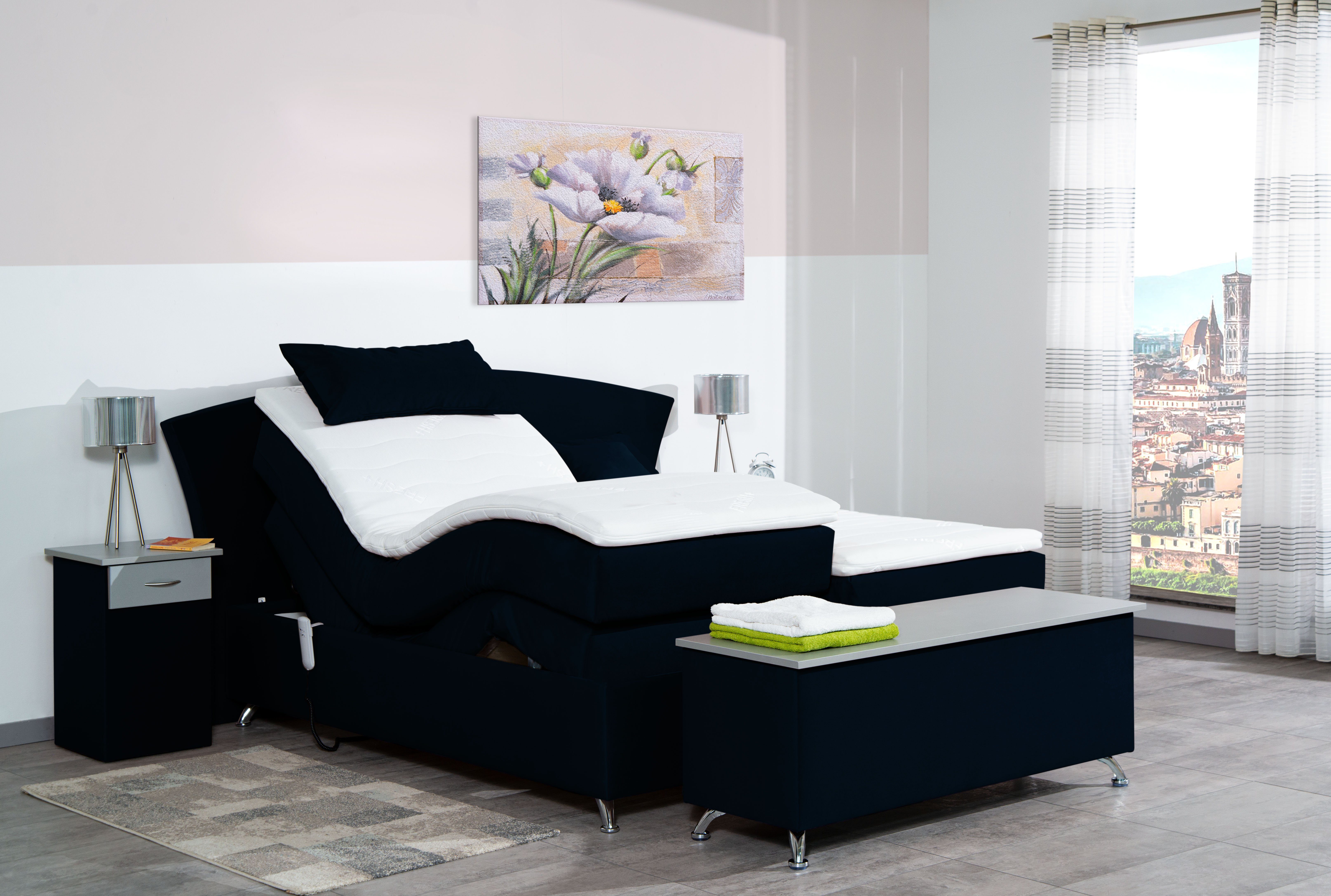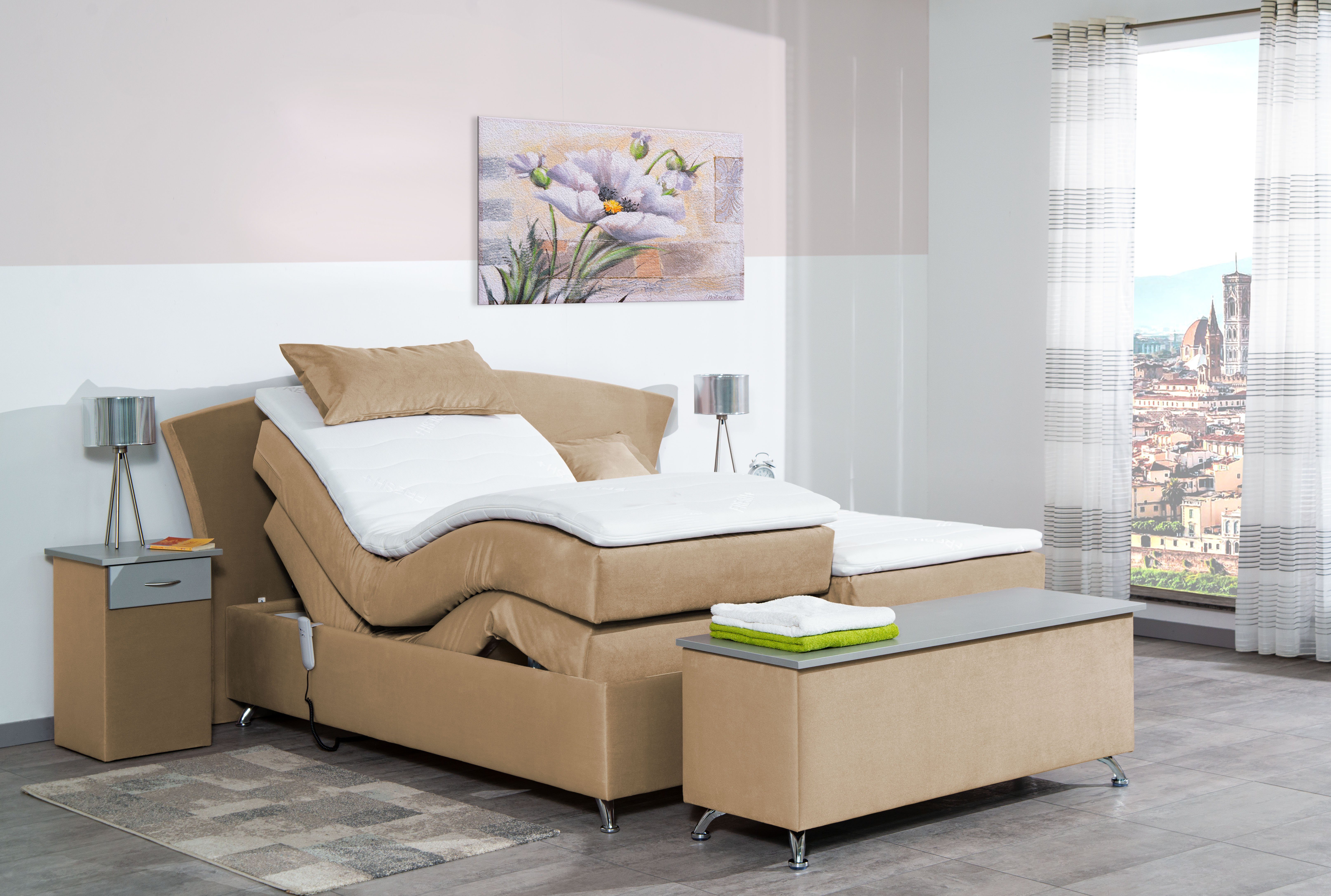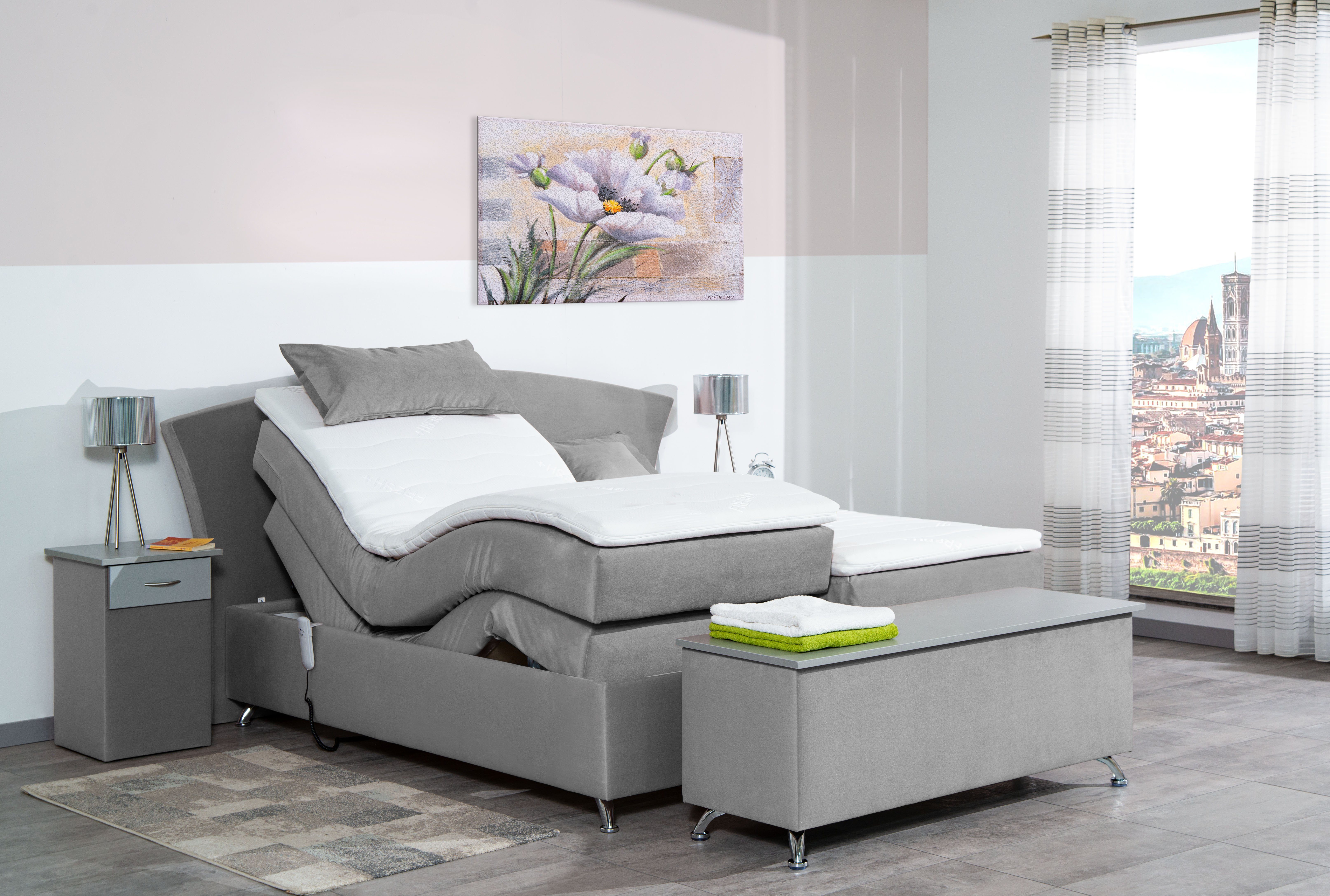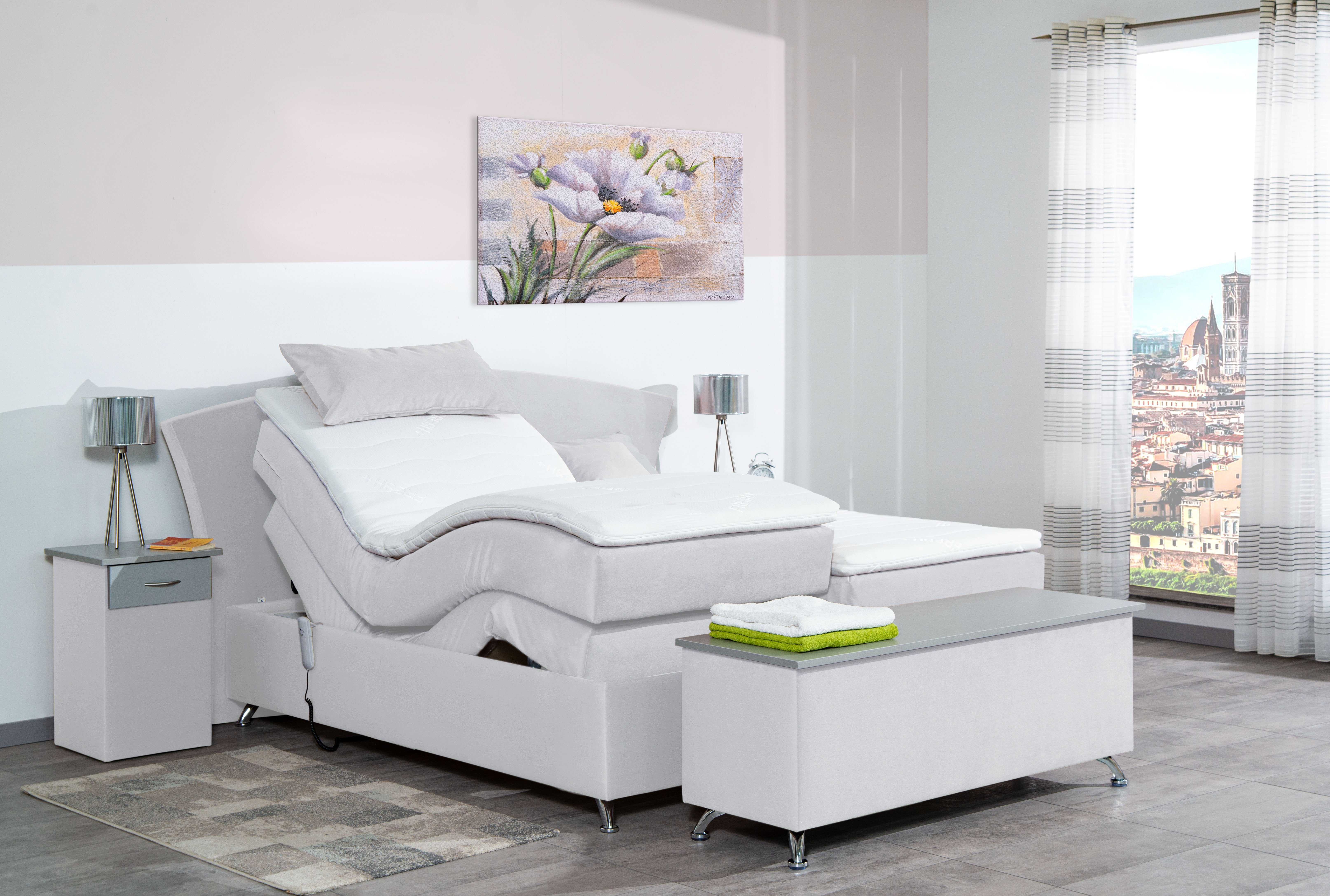 Ausstattung | Elektrische Höhenverstellung, Ohne Fußteil, Ohne Nachttisch, Ohne Truhe, 7 Zohnen Taschenfederkern Matratze, Härtegrad H3, Ergoflex-Topper |