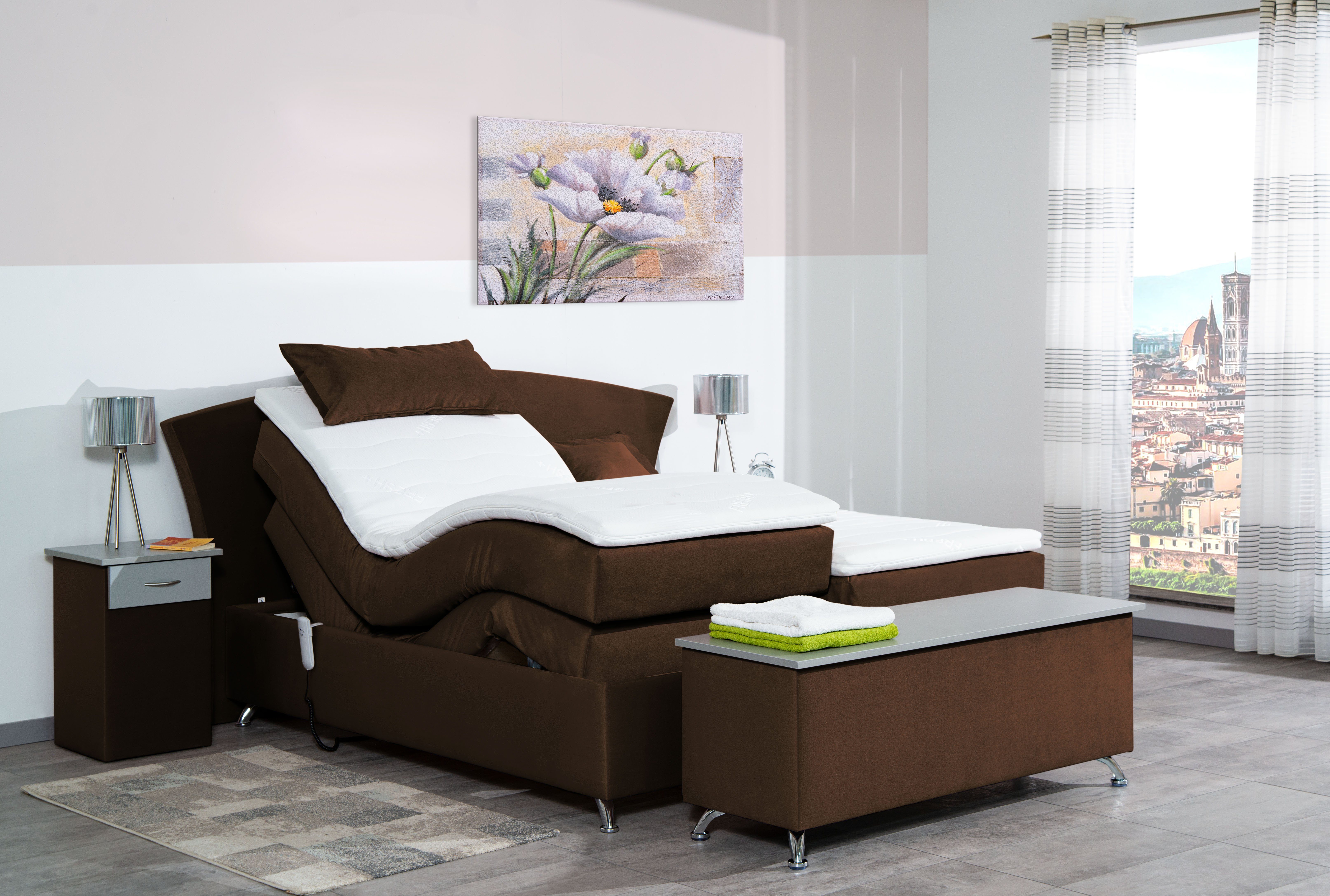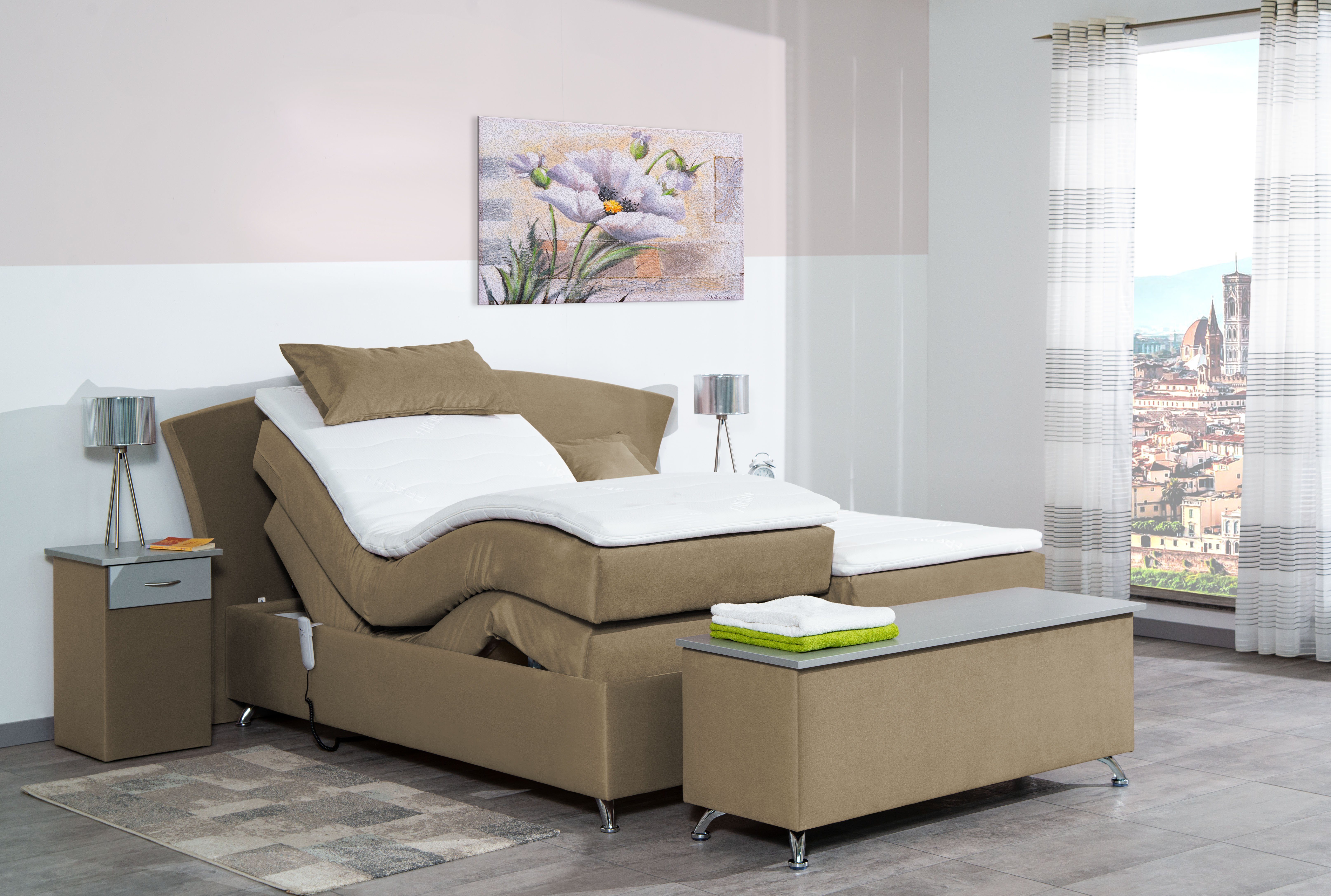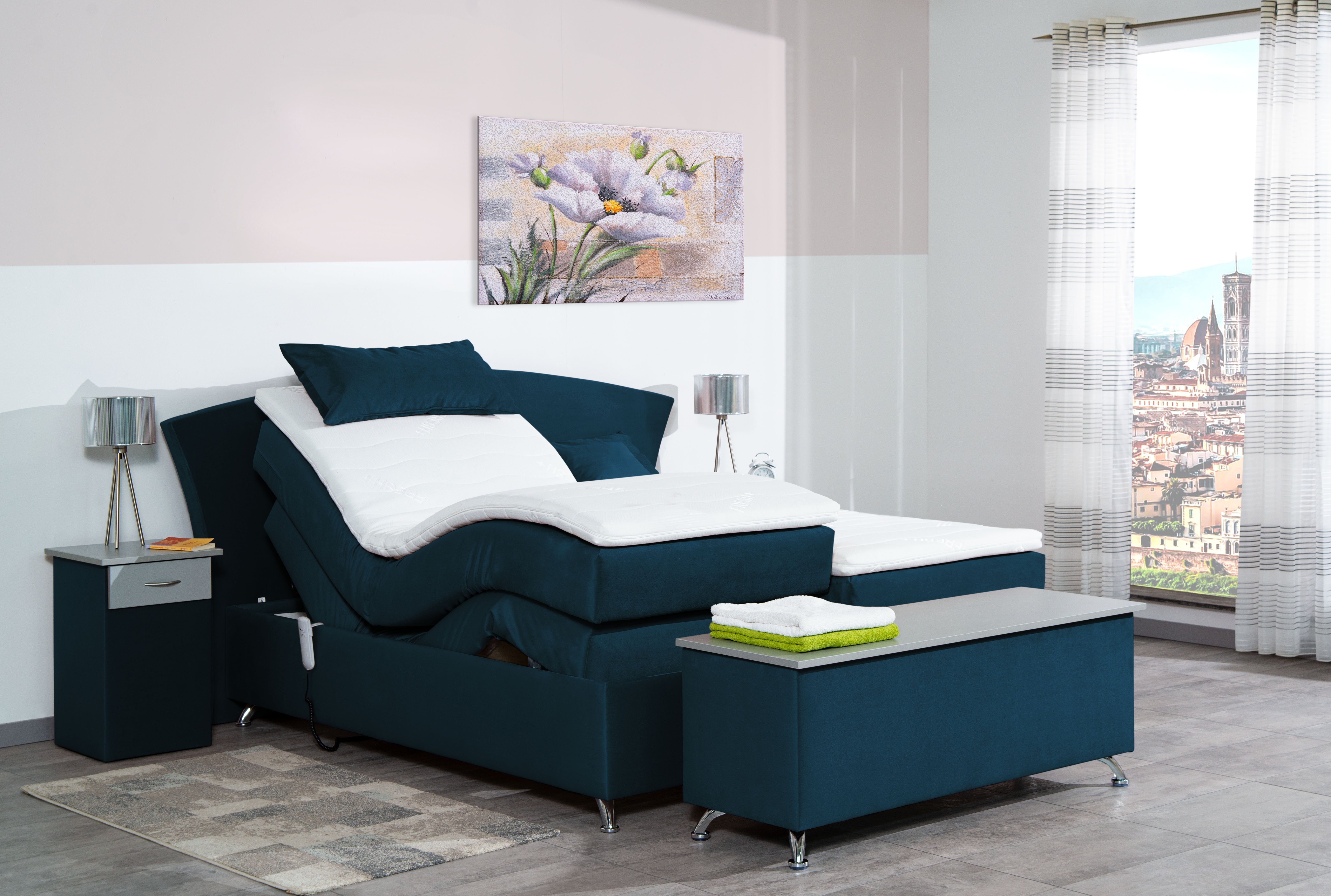 Ausstattung | Elektrische Höhenverstellung, Ohne Fußteil, Ohne Nachttisch, Ohne Truhe, 7 Zohnen Taschenfederkern Matratze, Härtegrad H3, Ergoflex-Topper |