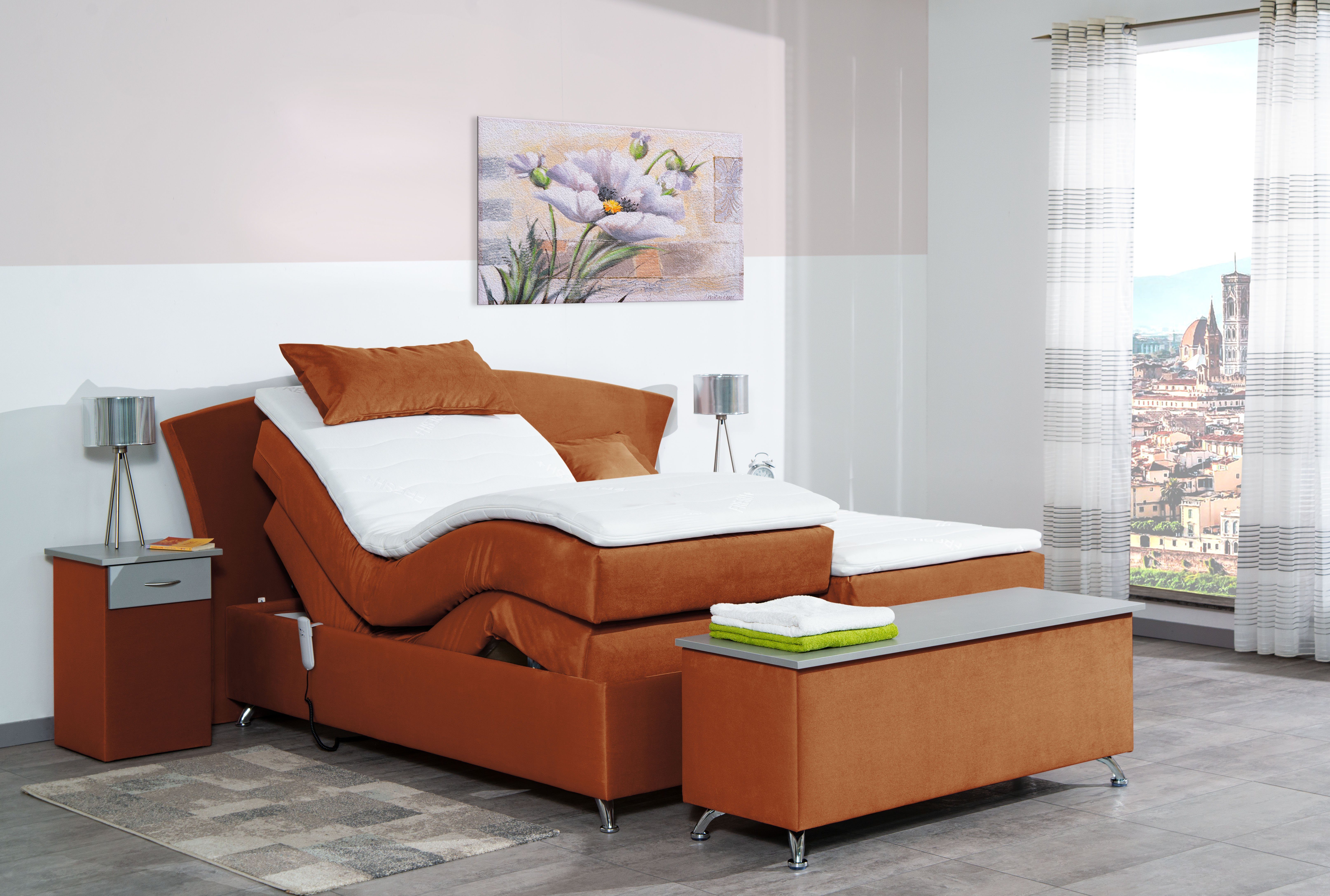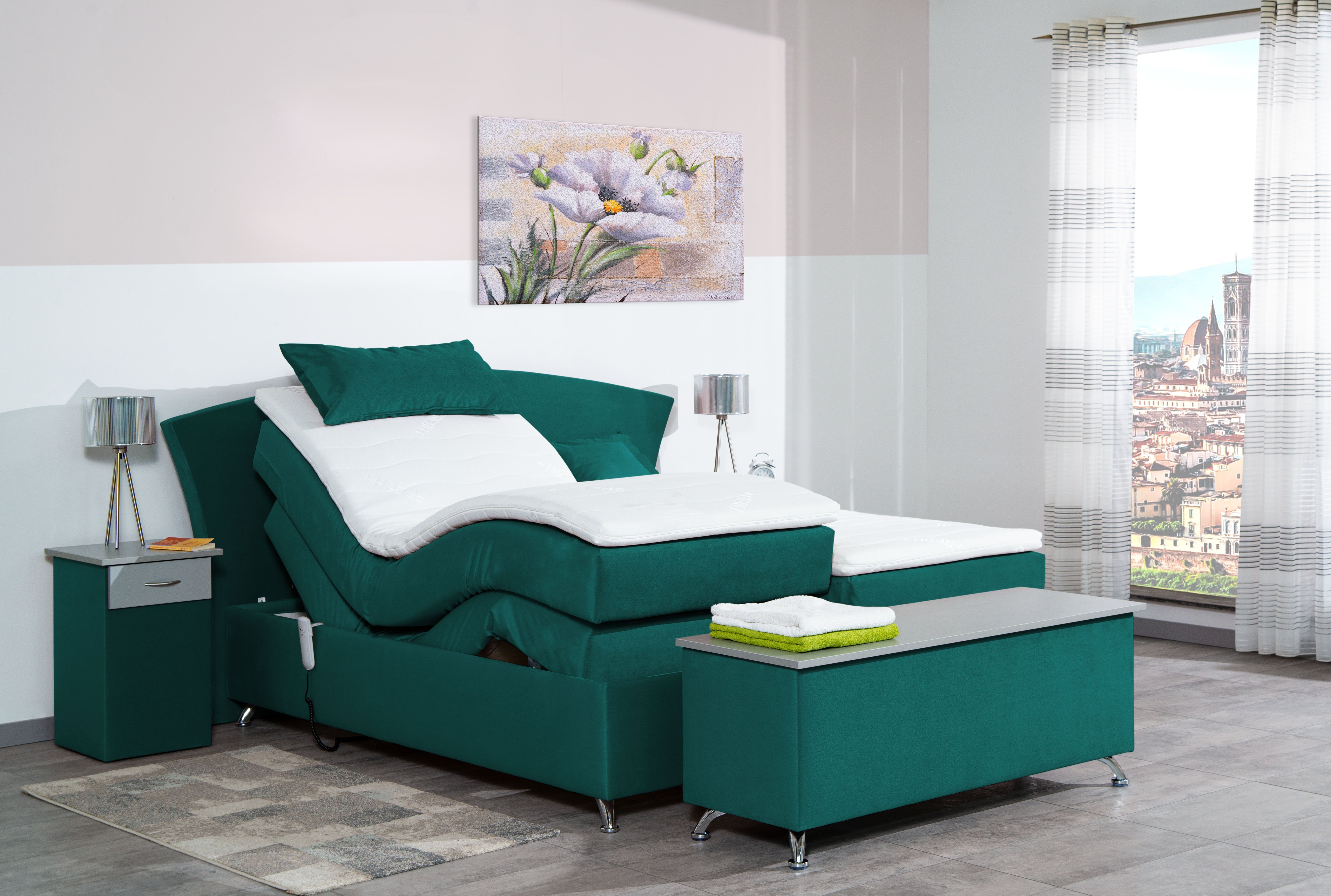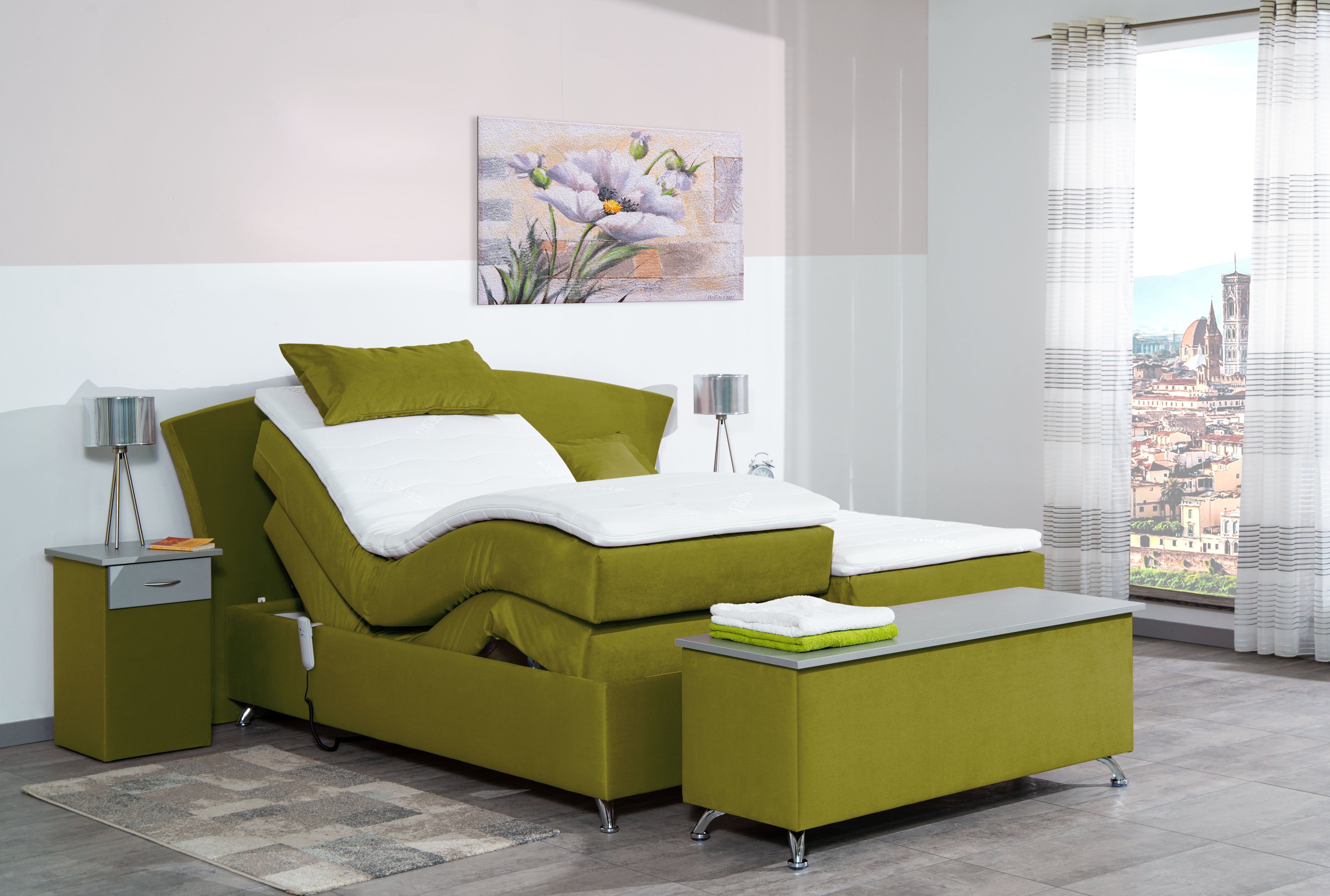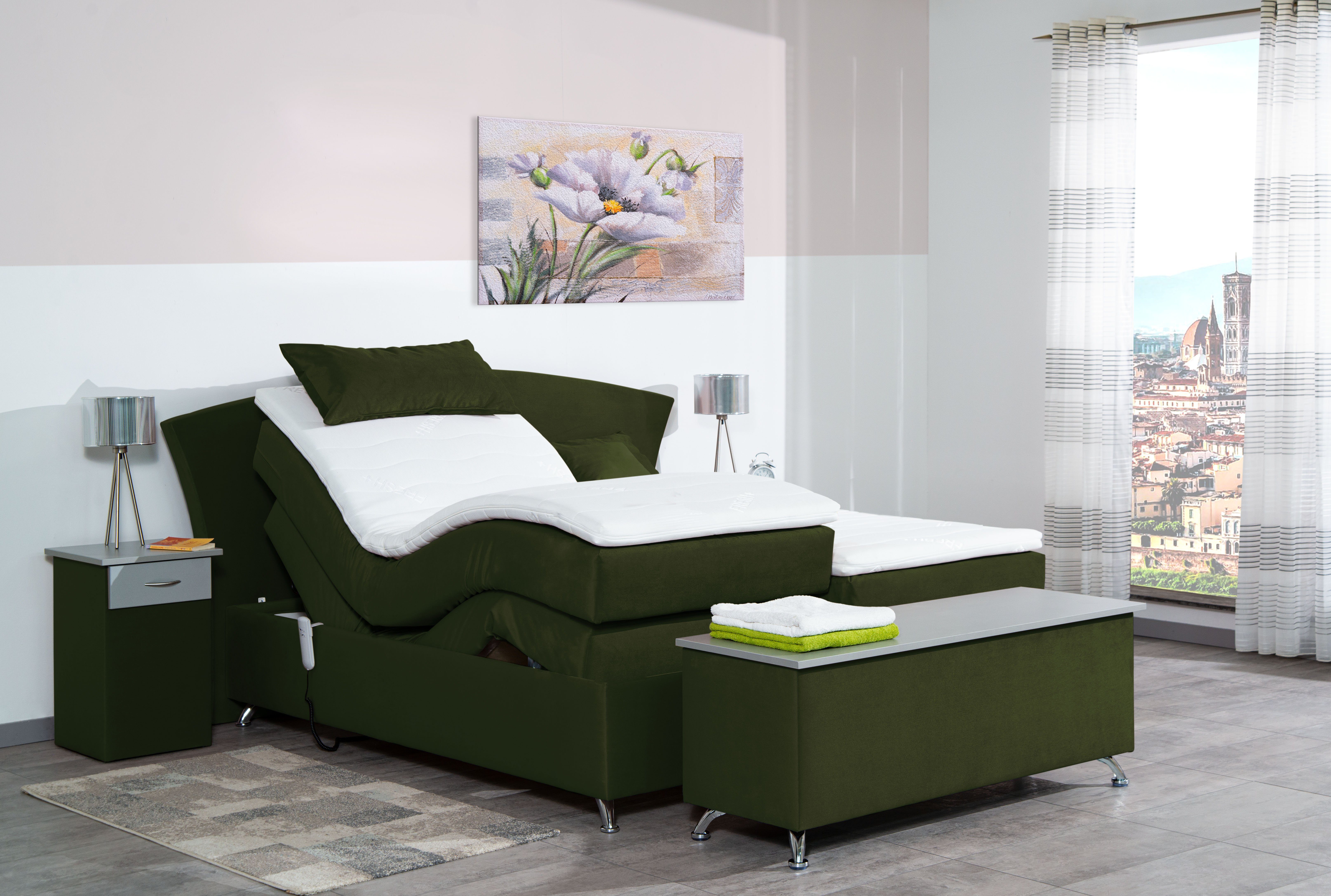 Ausstattung | Elektrische Höhenverstellung, Ohne Fußteil, Ohne Nachttisch, Ohne Truhe, 7 Zohnen Taschenfederkern Matratze, Härtegrad H3, Ergoflex-Topper |
