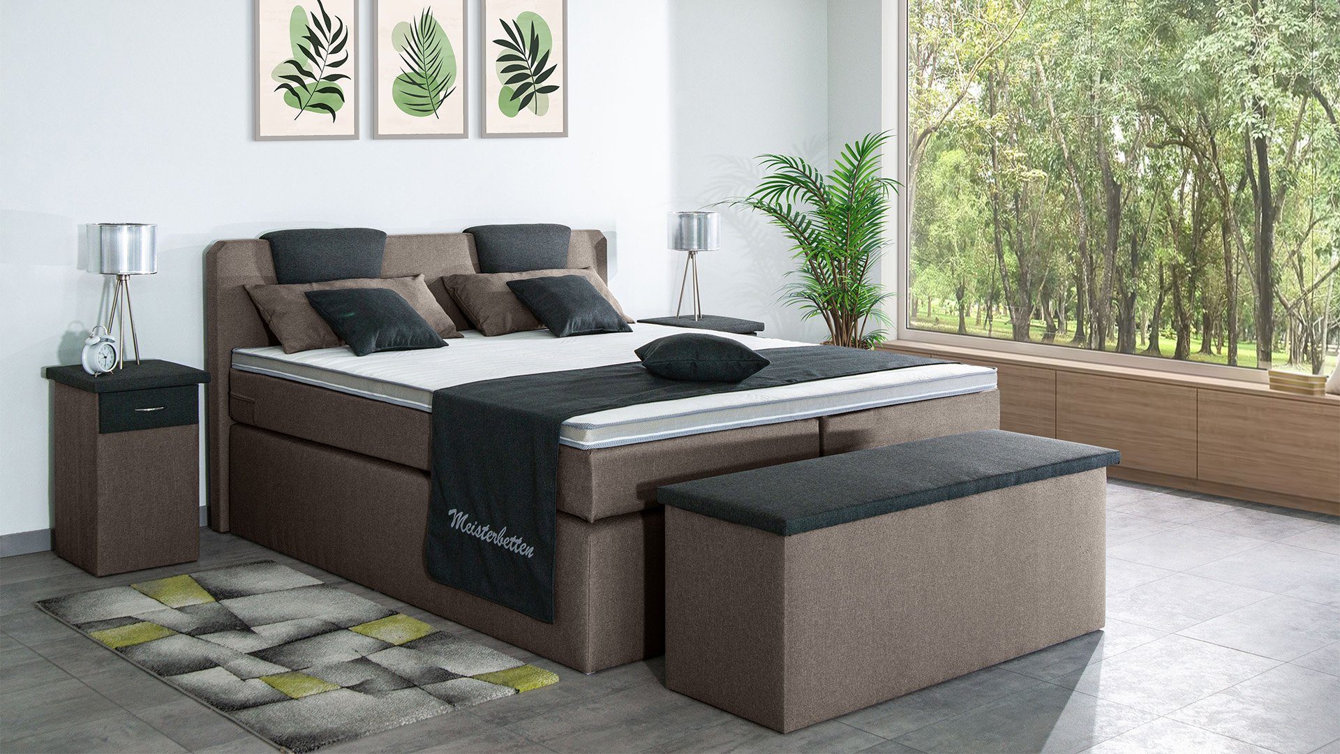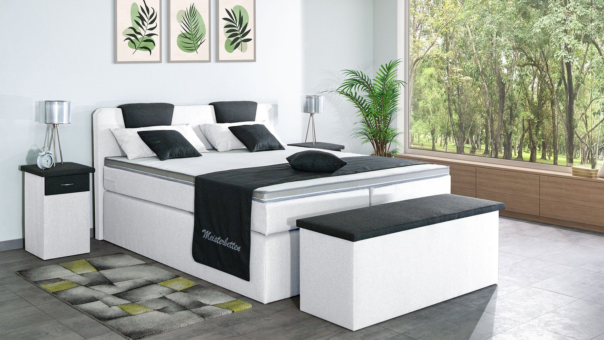 Ausstattung | Ohne Fußteil, Ohne Nachttisch, Ohne Truhe, 7 Zohnen Taschenfederkern Matratze, Härtegrad H3, Komfortschaum-Topper |