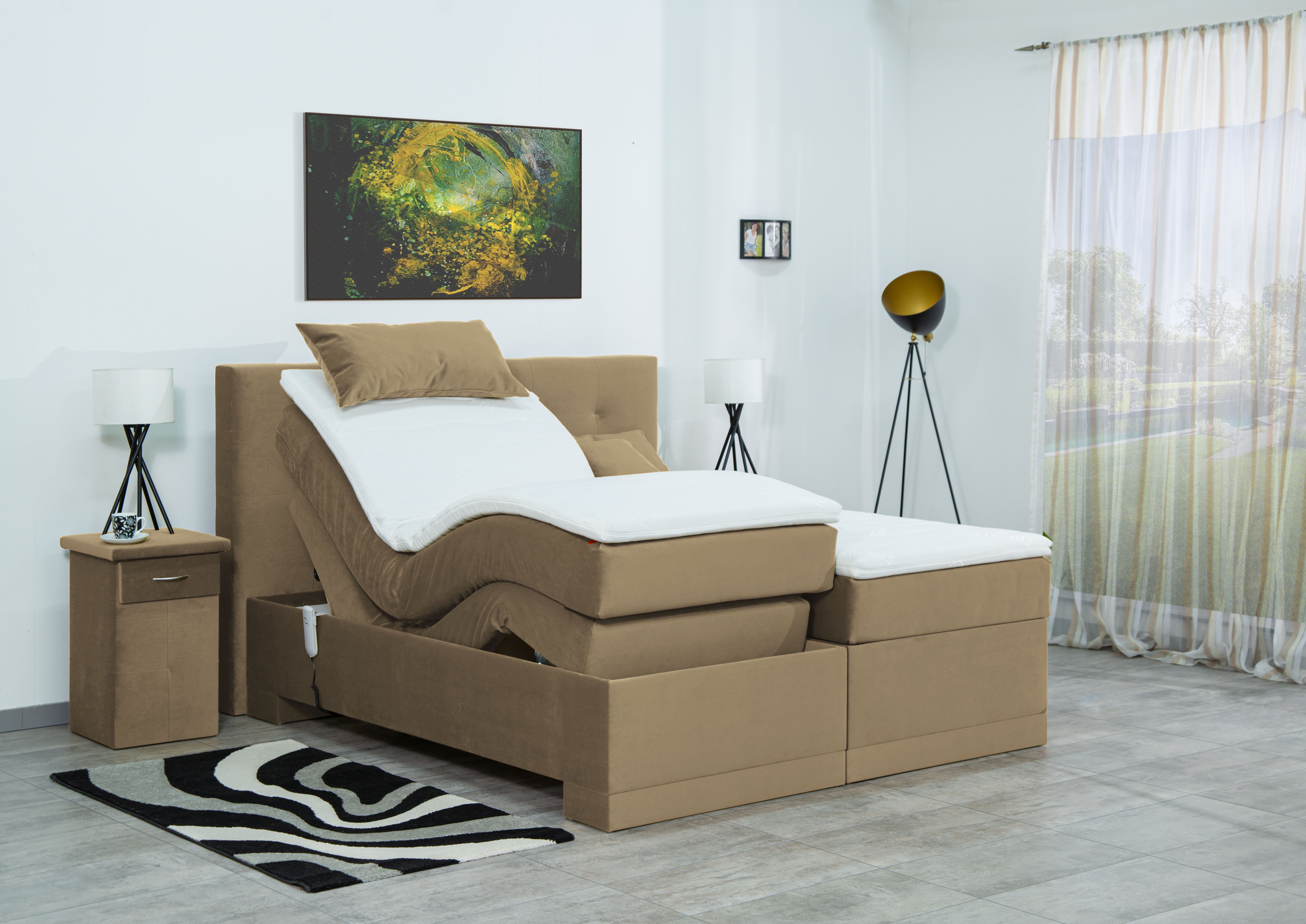Erleben Sie mit unserem elektrisch verstellbaren Boxspringbett Luxus und Bequemlichkeit in Ihrem eigenen Zuhause. Genießen Sie den ultimativen Schlafkomfort und erholsame Nächte, die ganz auf Ihre individuellen Bedürfnisse abgestimmt sind. Machen Sie Ihr Schlafzimmer zu einer Oase der Entspannung und des Wohlbefindens.